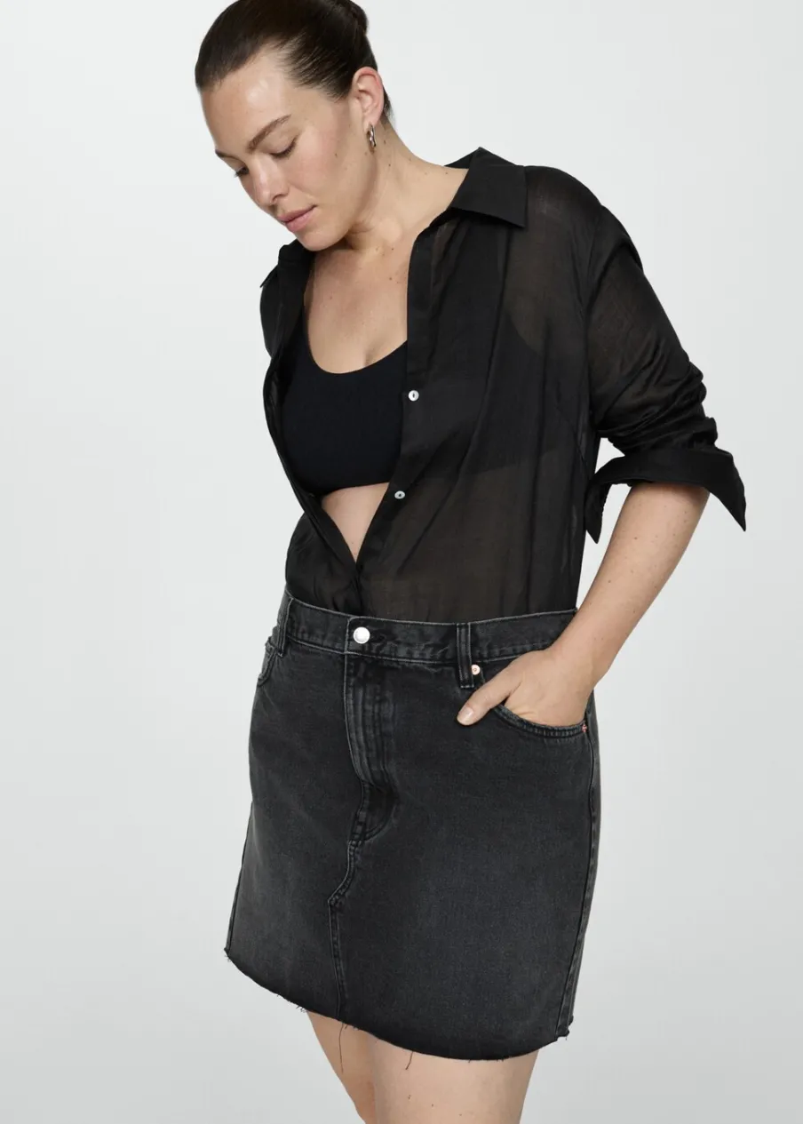 Tkanina bawełniana w dżinsowym stylu. Podwyższony stan. Model prosty. Krótki krój. Dwie kieszenie z przodu. Kieszeń na bilon. Dwie kieszenie nakładane z tyłu. Postrzępione nogawki. Dostępne w Plus Size. Zapięcie na zamek i guzik z przodu.