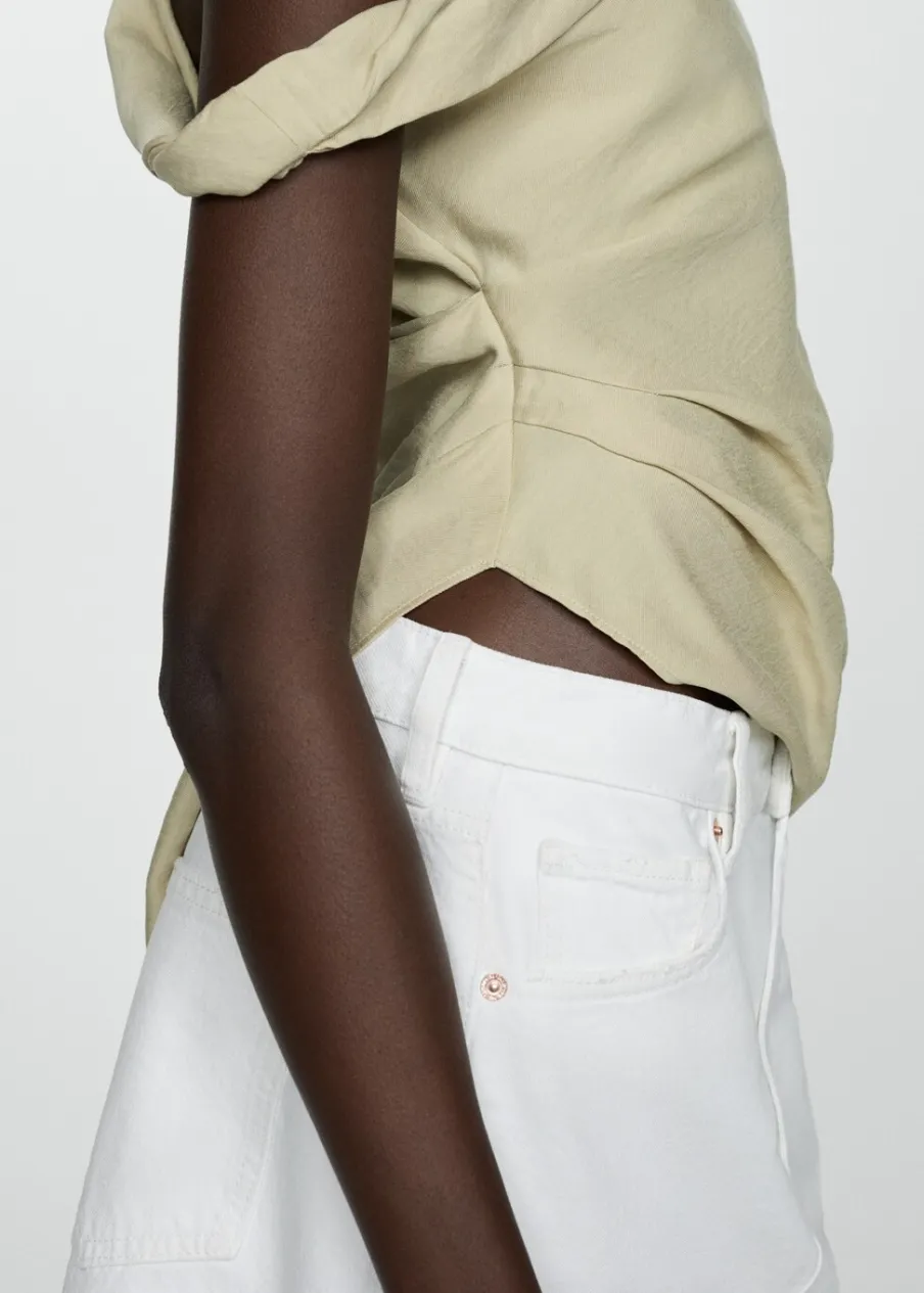 OpisTkanina bawełniana w dżinsowym stylu. Podwyższony stan. Krótki krój. Model prosty. Dwie kieszenie z przodu. Kie…