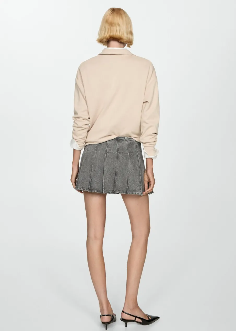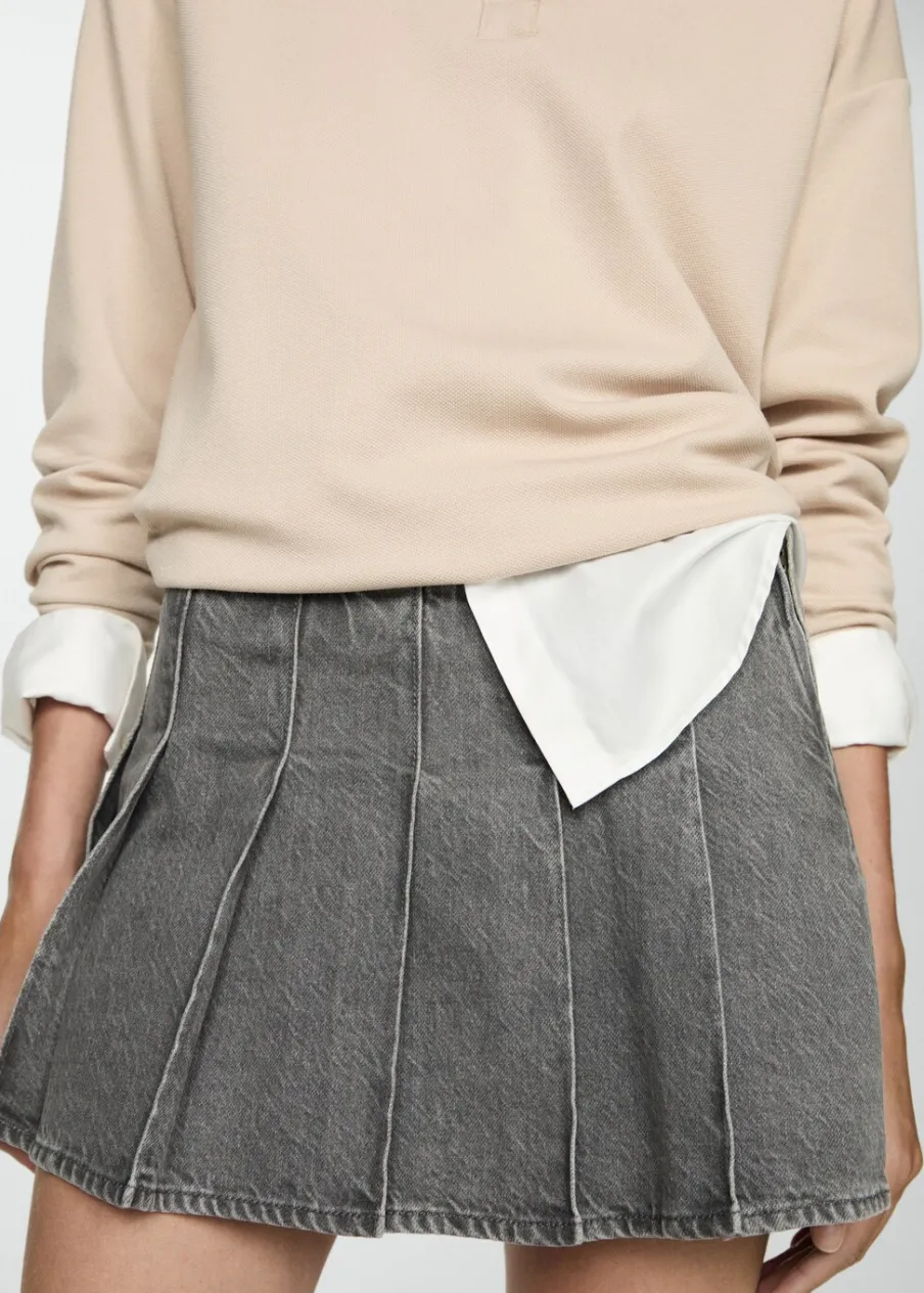 Tkanina bawełniana w dżinsowym stylu. Fason z zakładkami. Krótki krój. Wytarty efekt. Niski stan. Boczne zapięcie na suwak.