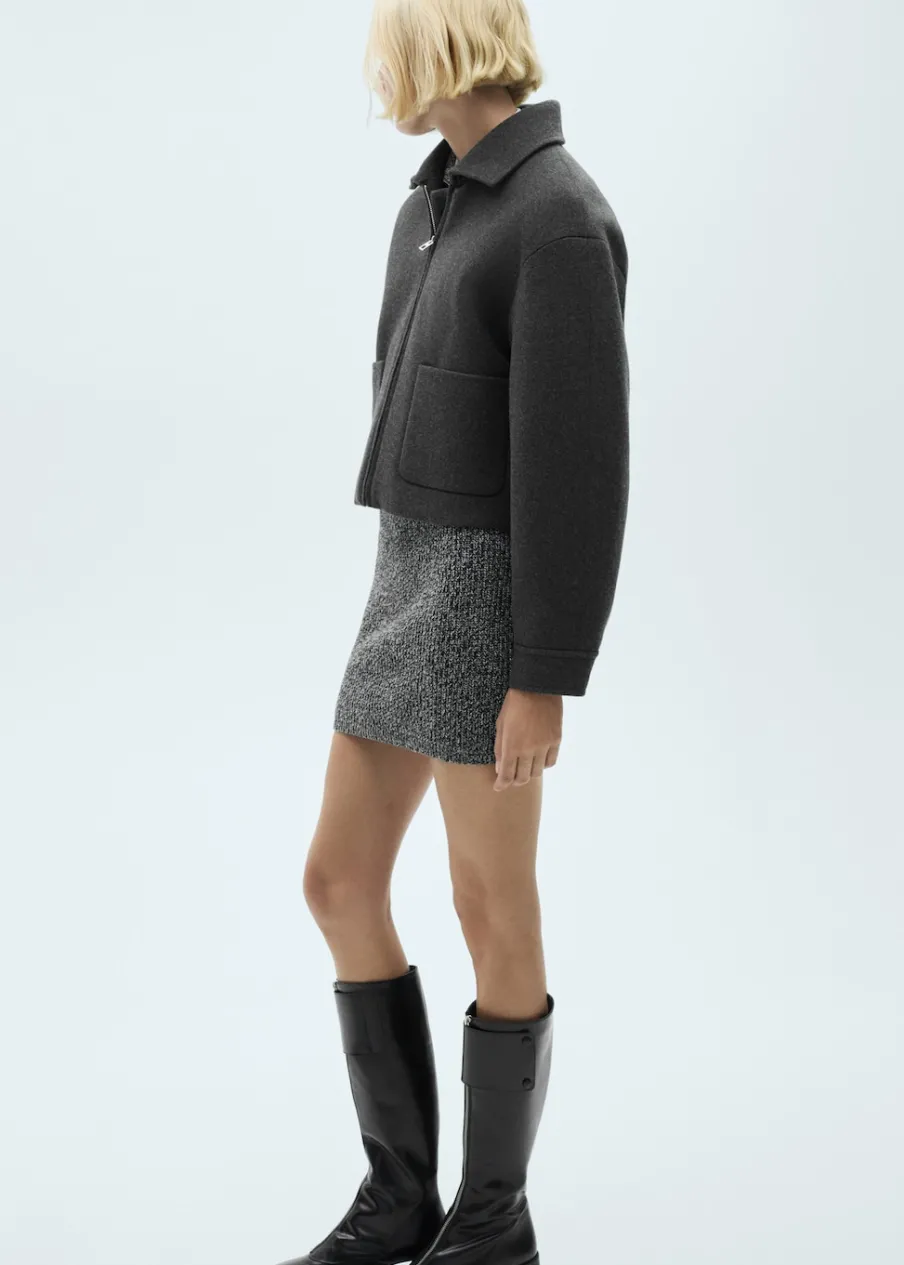 OpisŚredni stan. Model prosty. Krótki krój. Elastyczny pas. Bez zapięcia. Wyłącznie online. Total look. Modelka ma…
