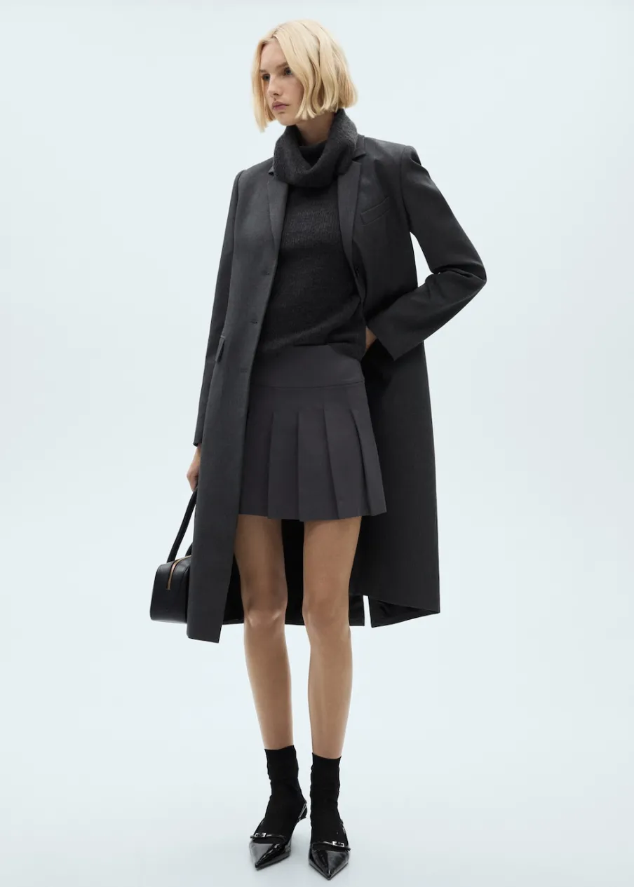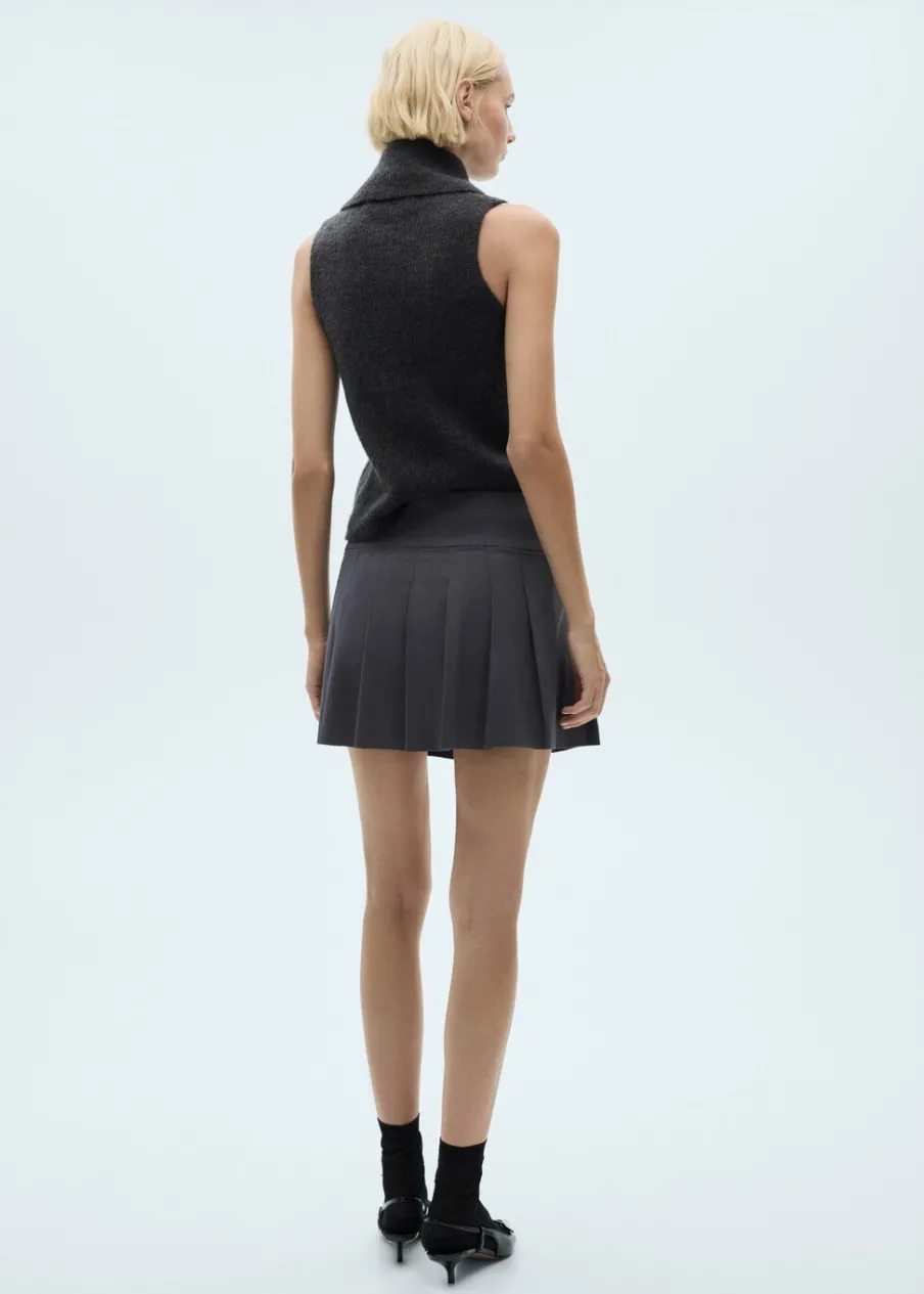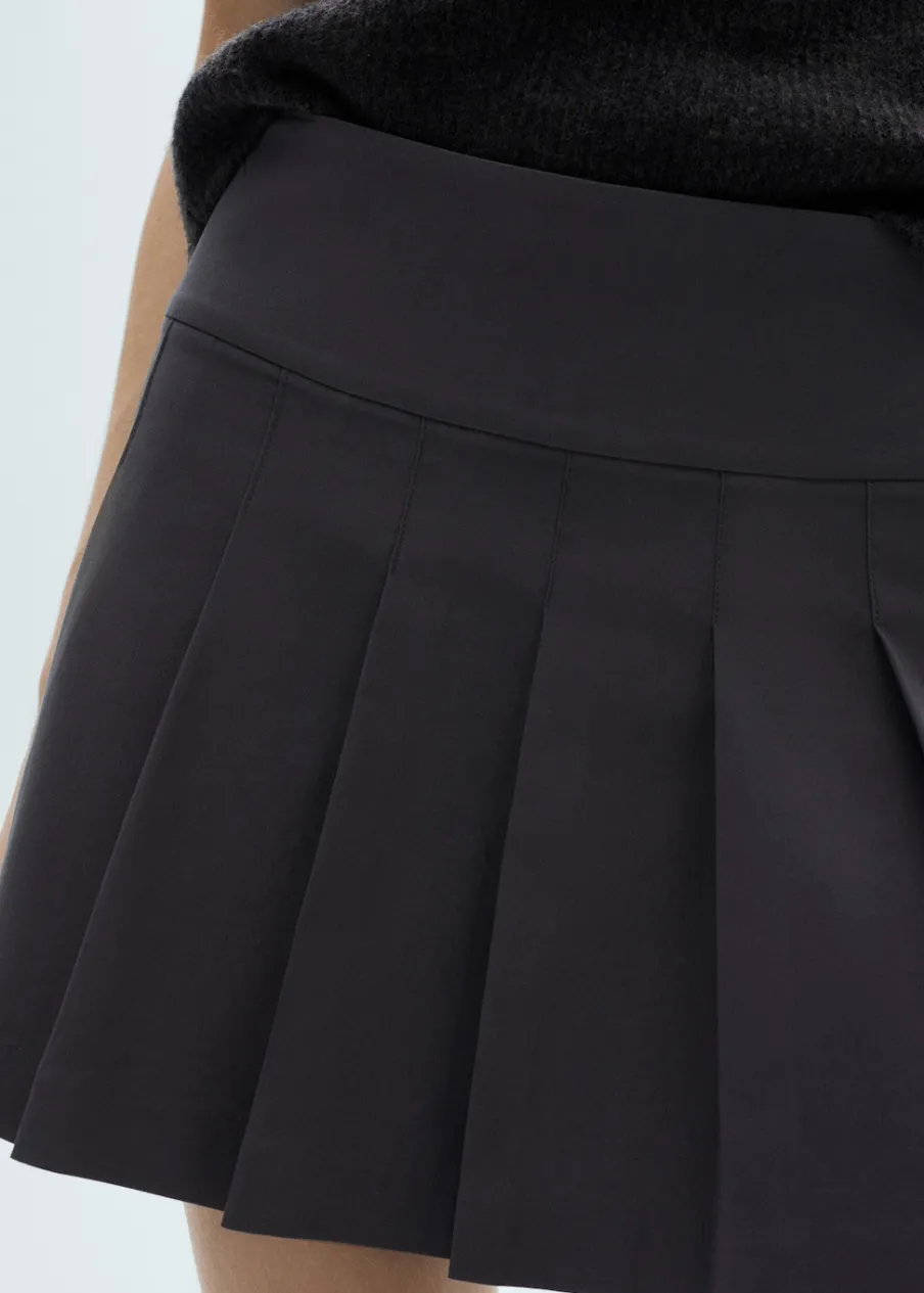 Lejąca tkanina. Krótki krój. Model prosty. Fason z zakładkami. Kryte zapięcie na zamek z boku. Modelka ma 178 cm wzrostu i nosi rozmiar S/36. Modelka ma 179 cm wzrostu i nosi rozmiar S/36.