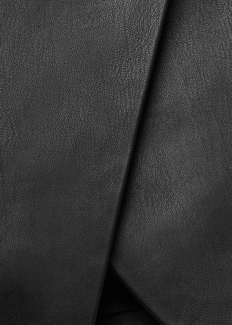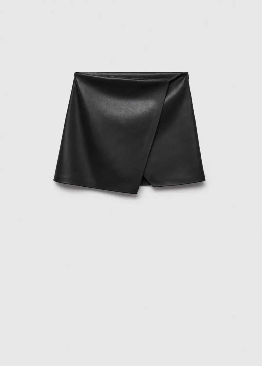 Kolekcja wieczorowa i imprezowa. Efekt skóry. Model prosty. Krótki krój. Kopertowy element. Wewnętrzna podszewka. Zapięcie na suwak.