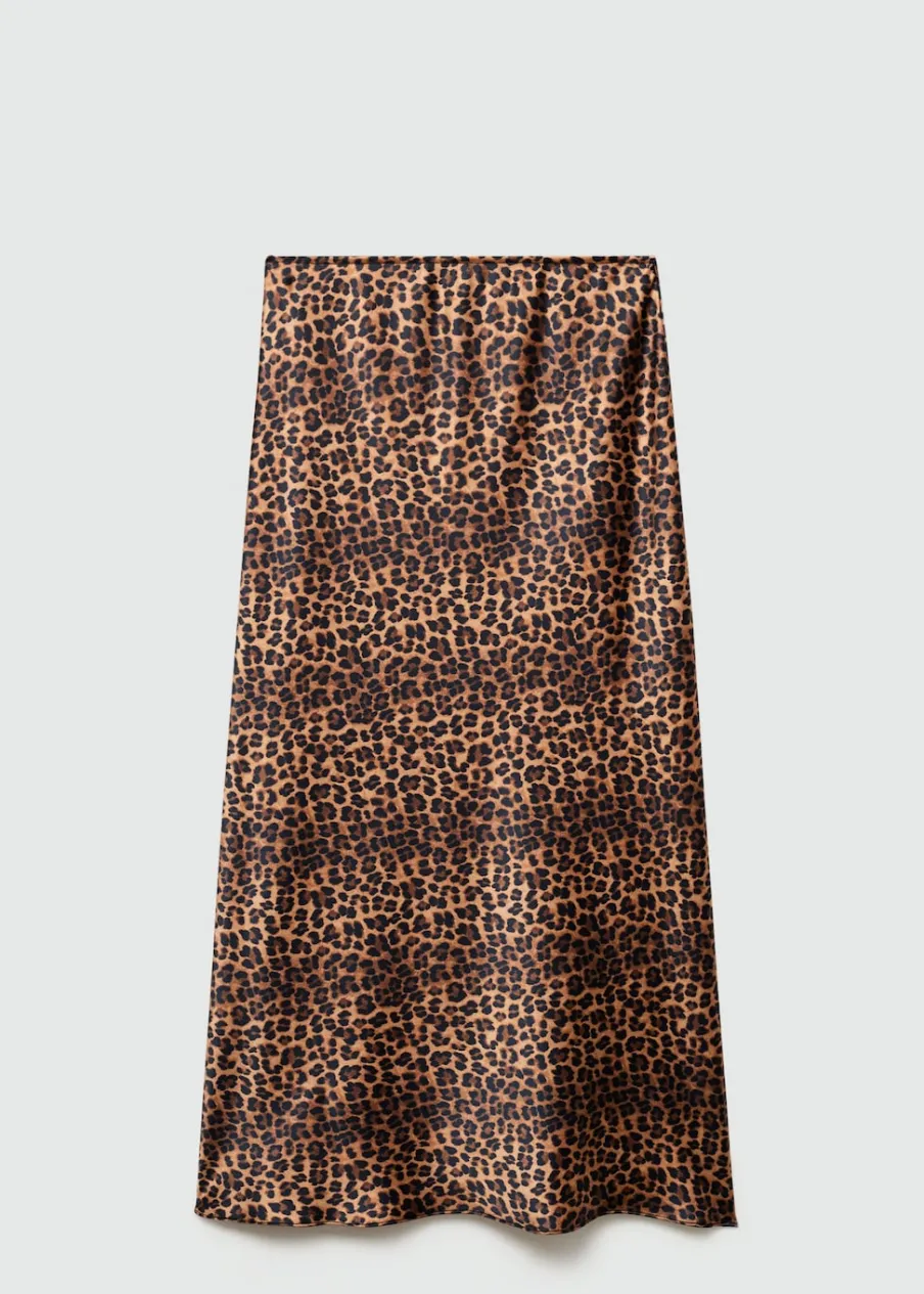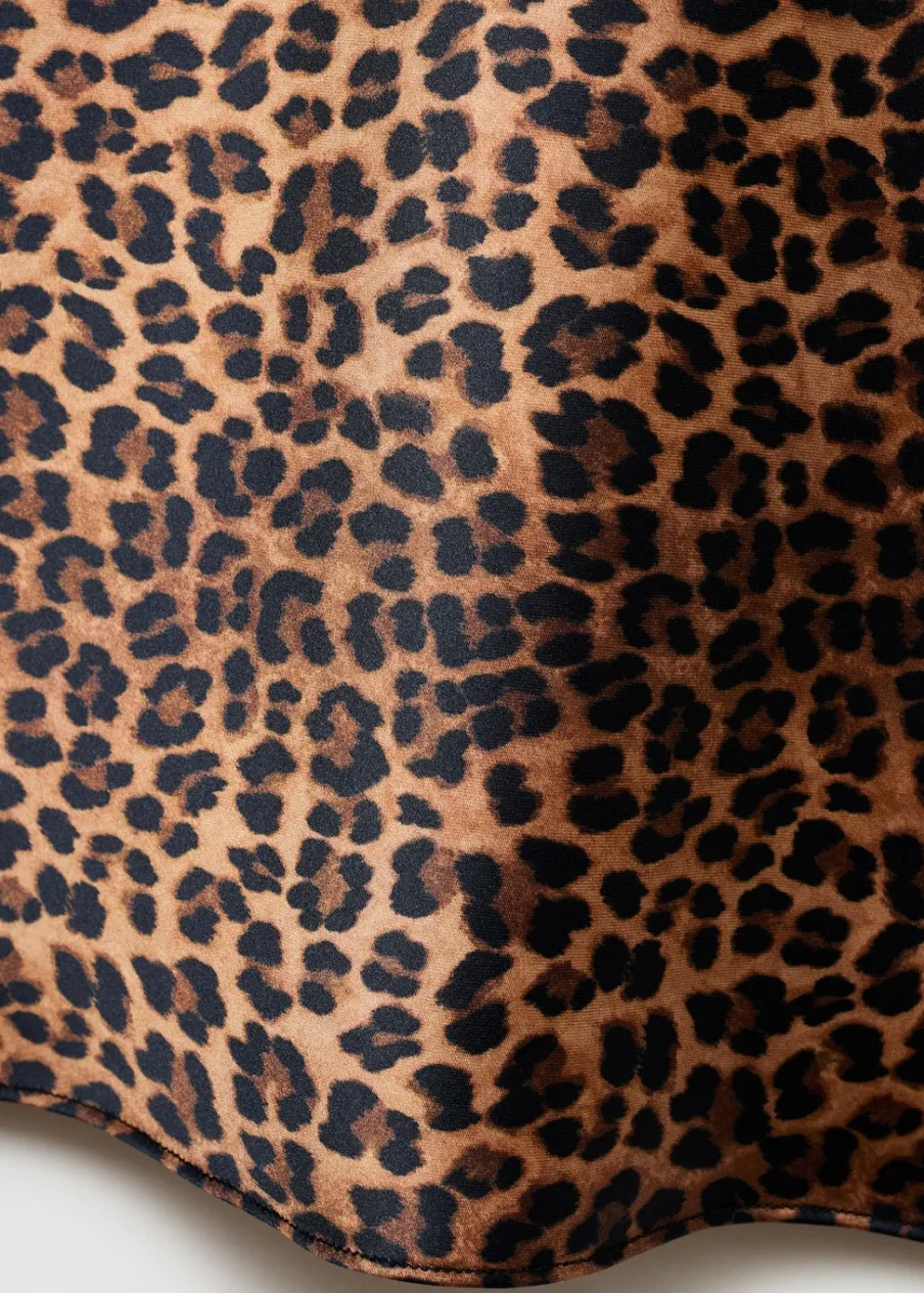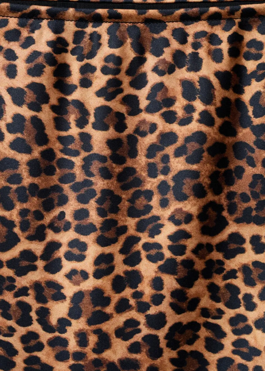 Satynowa tkanina. Średni stan. Model długi. Model prosty. Wzór w lamparcie cętki. Zwierzęcy wzór. Bez zapięcia. Elastyczny pas. Modelka ma 180 cm wzrostu i nosi rozmiar S. Modelka ma 178 cm wzrostu i nosi rozmiar S/36.
