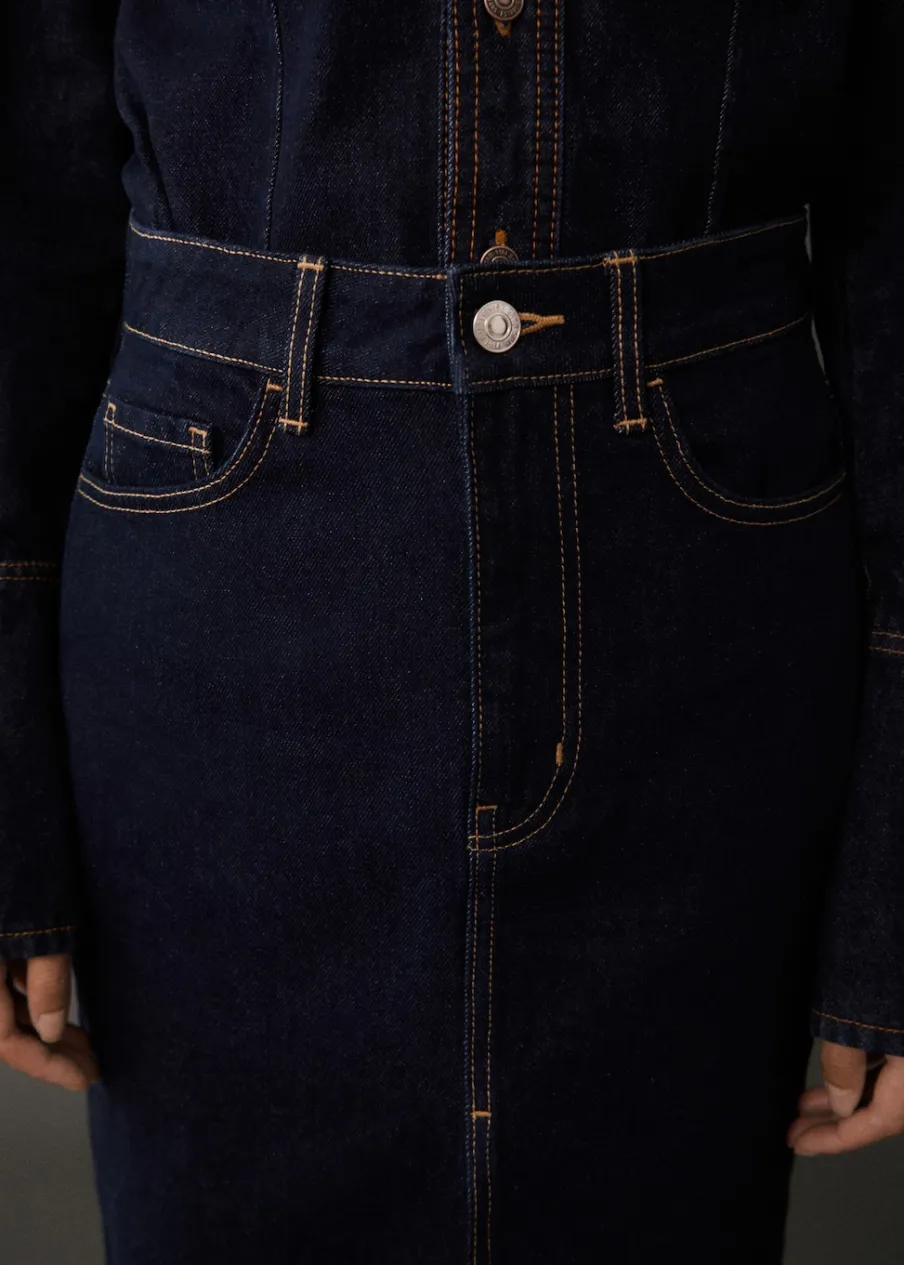 Tkanina bawełniana w dżinsowym stylu. Krótki krój. Rinse wash. Pięć kieszeni. Szlufki. Rozcięcie z przodu u dołu. Modelka ma 177 cm wzrostu i nosi rozmiar S/36. Zapięcie na zamek i guzik z przodu. Model wcięty.