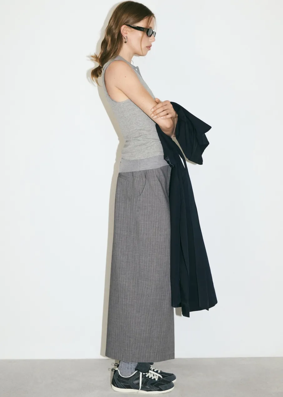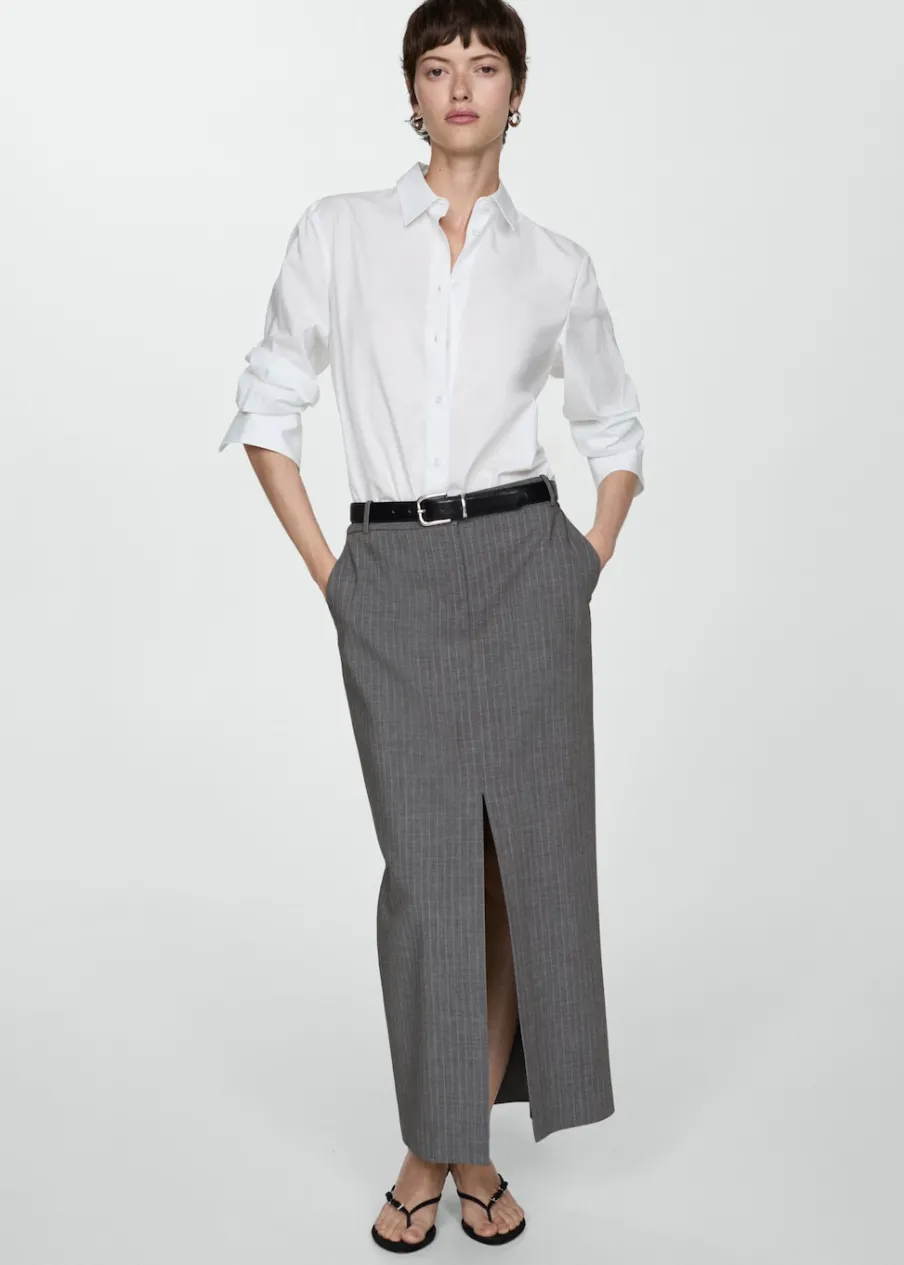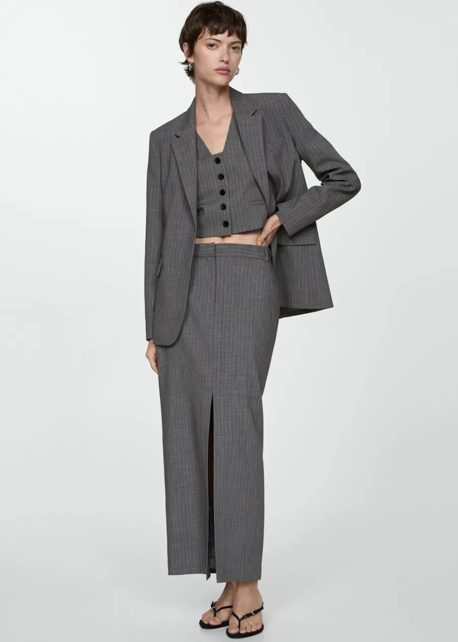 Model prosty. Model długi. Średni stan. Szlufki. Dwie kieszenie boczne. Dwie wpuszczane kieszenie z tyłu. Kryte zapięcie na guzik, haftkę i suwak. Rozcięcie z przodu u dołu. Total look.