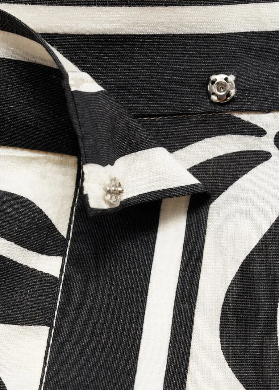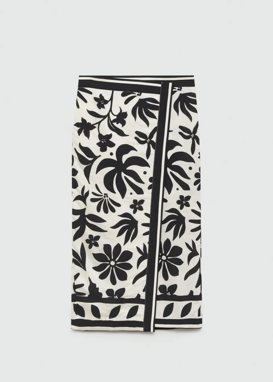 OpisLejąca tkanina. Podwyższony stan. Krój do kolan. Model prosty. Model zakładany. Kwiatowy wzór. Zapięcie na met…