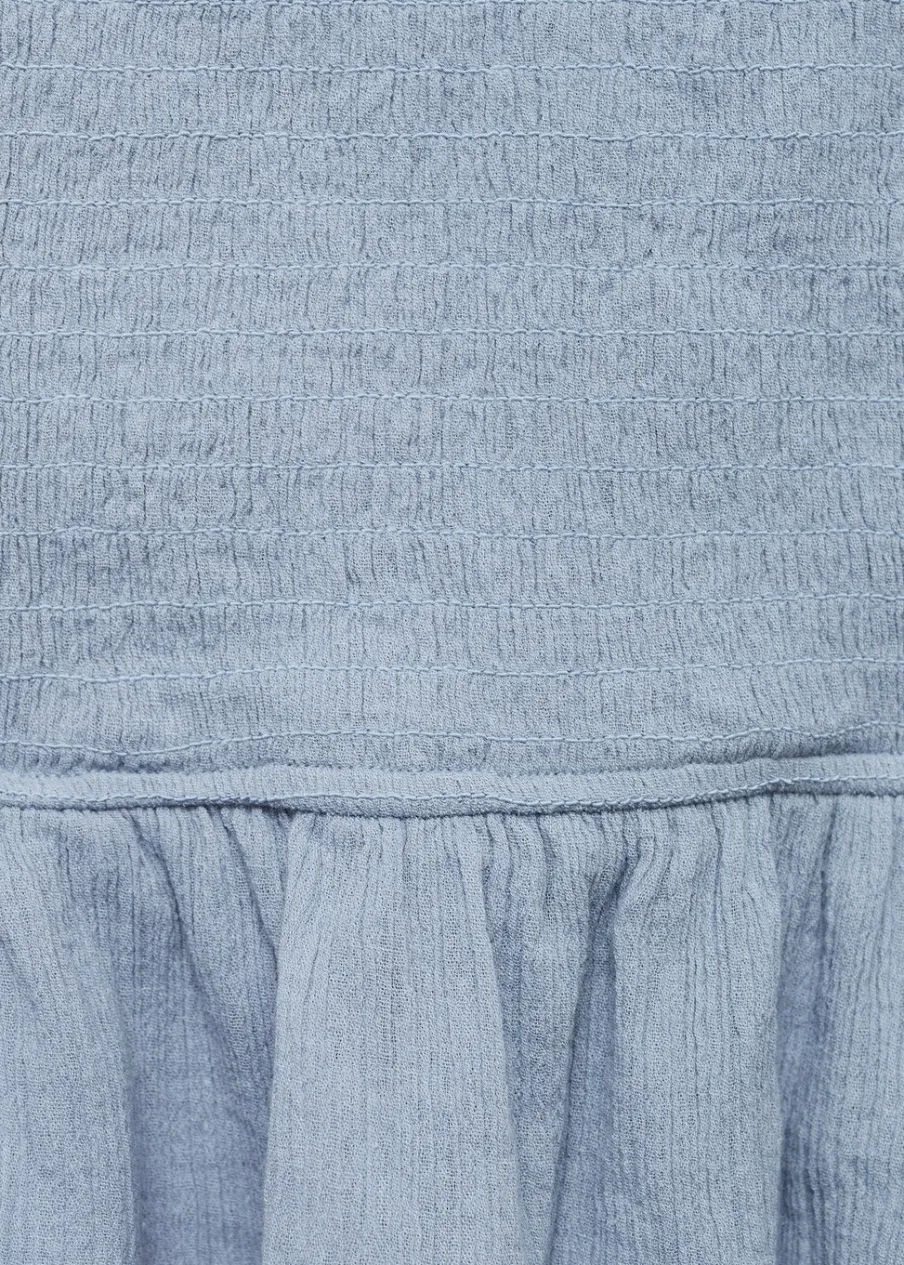 OpisDostępny zestaw total look. 100% bomull. Krótki krój. Marszczony detal. Falbanki u dołu. Bez zapięcia.