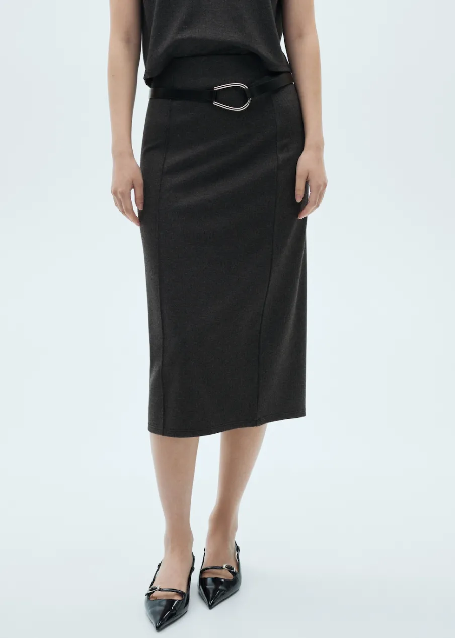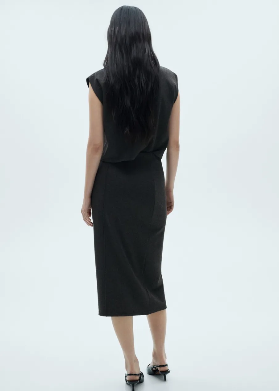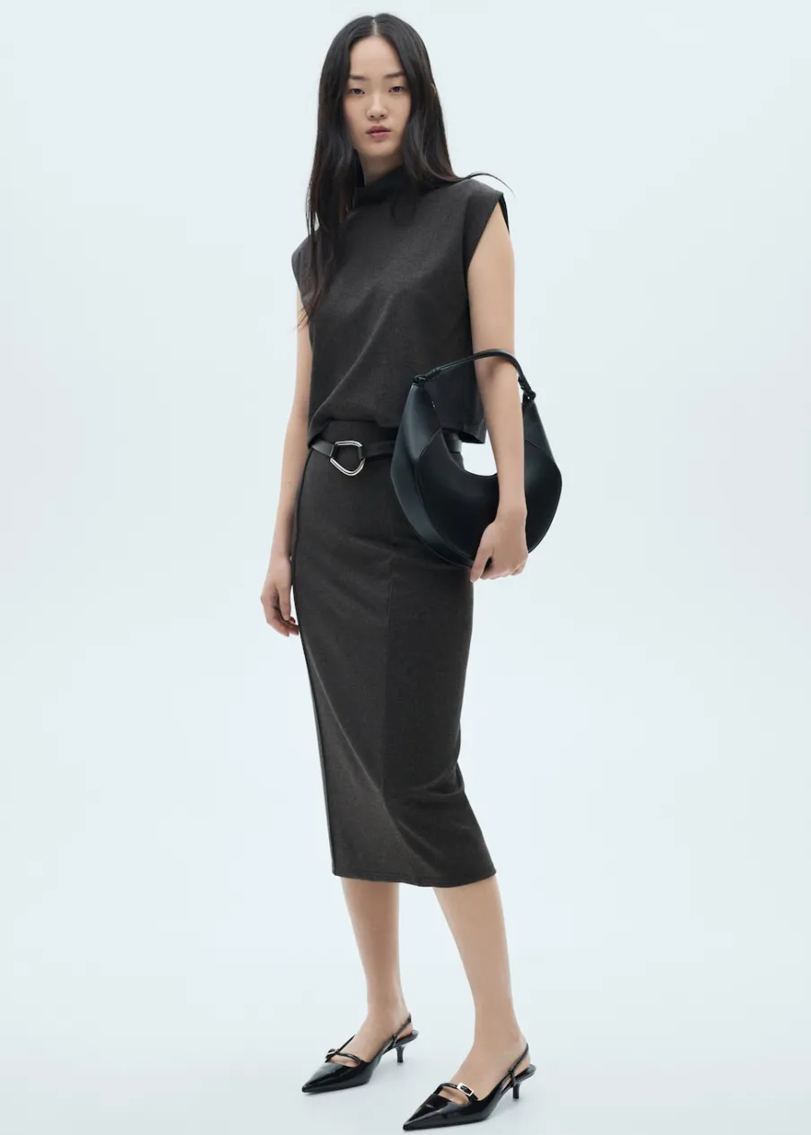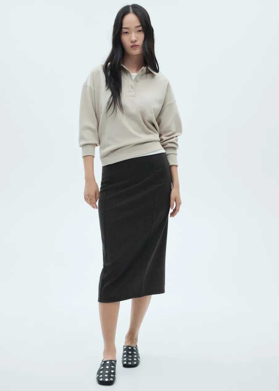 Dzianinowa tkanina. Krój do kolan. Bez zapięcia. Total look. Modelka ma 175 cm wzrostu i nosi rozmiar S/36. Model wcięty.