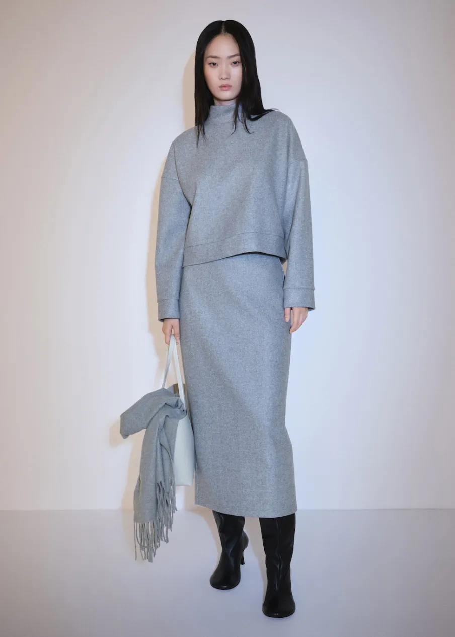 Model długi. Model prosty. Bez zapięcia. Rozcięcie z tyłu u dołu. Total look. Modelka ma 175 cm wzrostu i nosi rozmiar S/36. Tkanina frotte. Elastyczny pas.