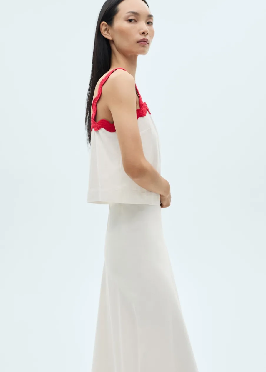 Bawełna 100%. Cienka tkanina. Deseń crop. Model prosty. Podwyższony stan. Zapięcie z tyłu.