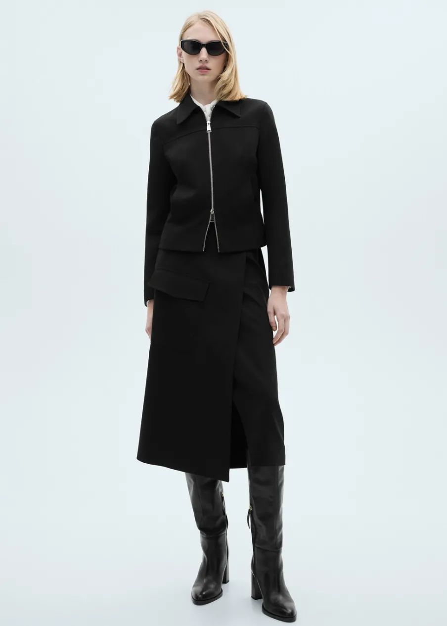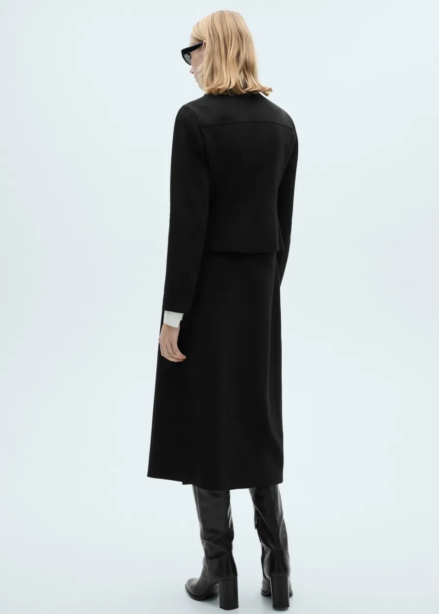 OpisModel evasé. Krój do kolan. Średni stan. Kieszeń boczna. Zapięcie na klamrę.