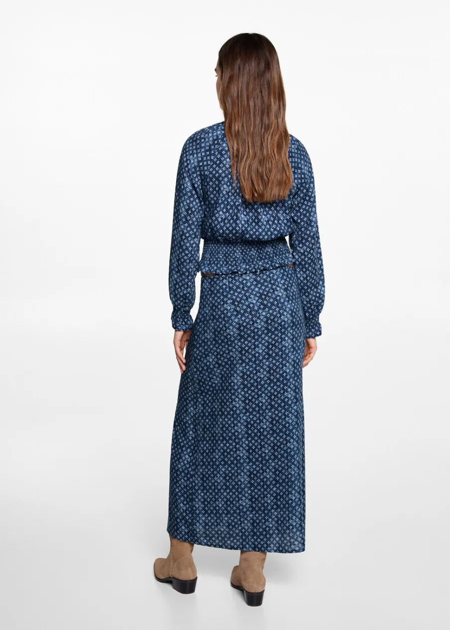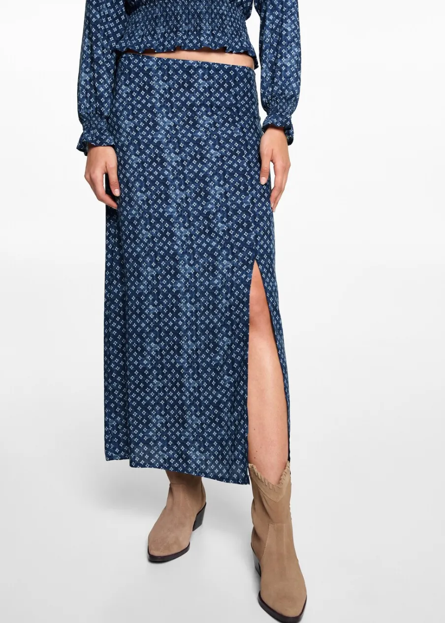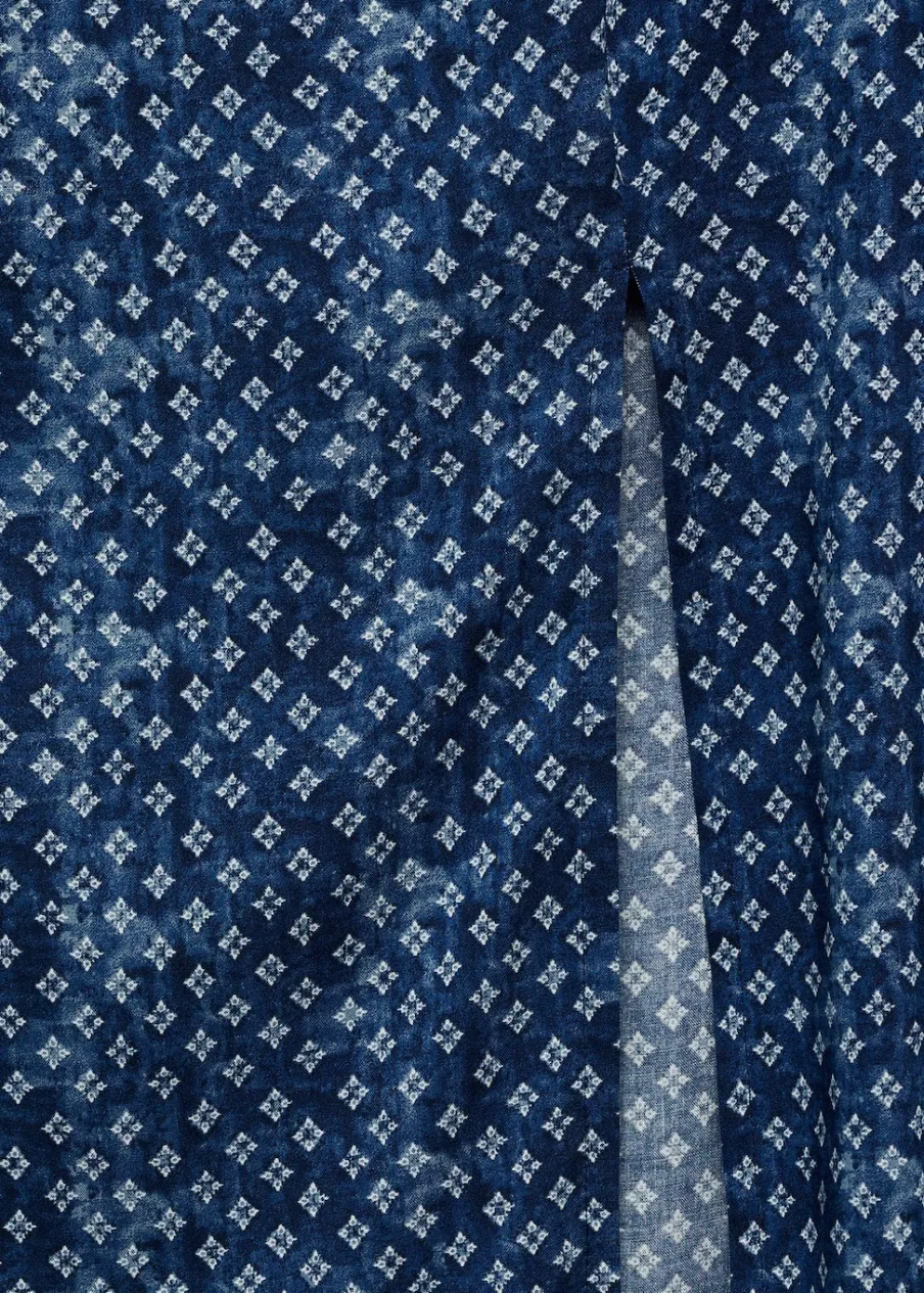 Dostępny zestaw total look. Model prosty. Krój do kolan. Elastyczny pas. Rozcięcie u dołu z boku. Bez zapięcia. Modelka ma 172 cm wzrostu i nosi rozmiar M. Nadruk. Tkanina z wiskozy.