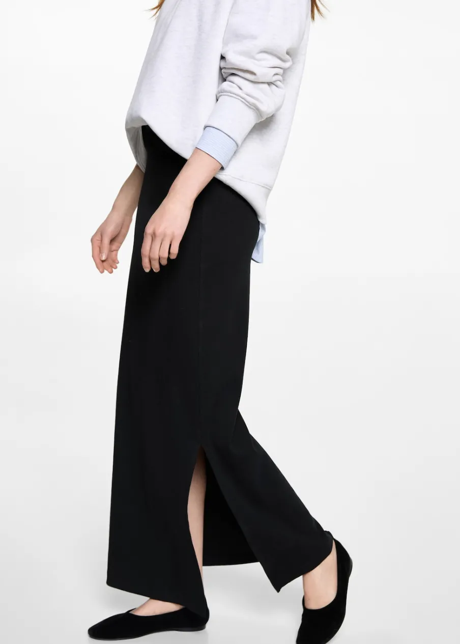 Tkanina bawełniana. Model prosty. Model długi. Krój do kolan. Podwyższony stan. Elastyczny pas. Bez zapięcia.