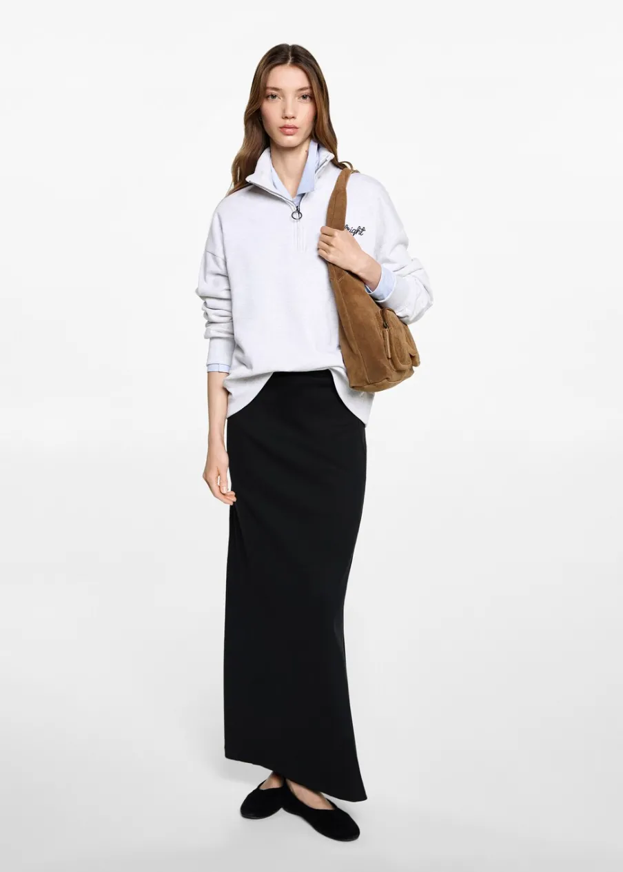 OpisTkanina bawełniana. Model prosty. Model długi. Krój do kolan. Podwyższony stan. Elastyczny pas. Bez zapięcia.