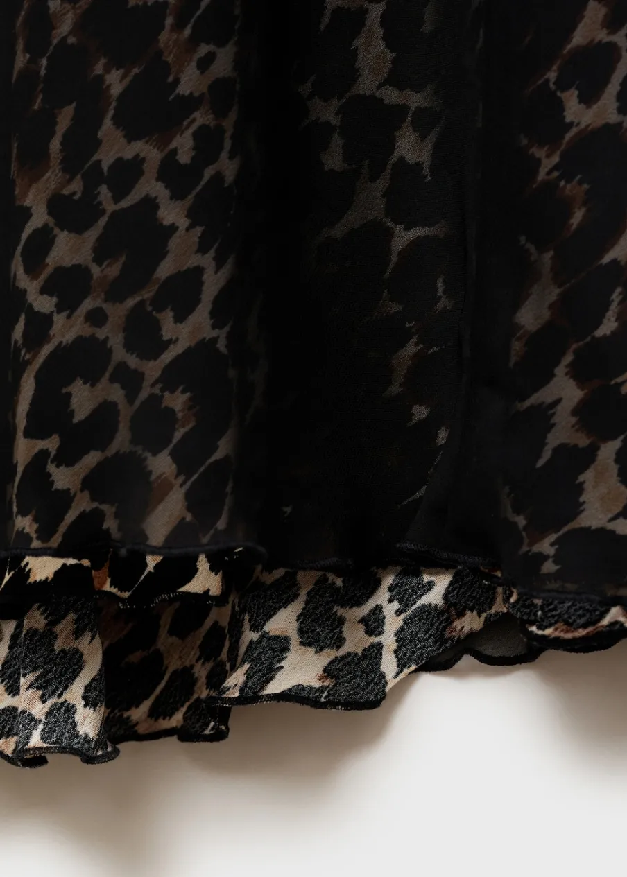 Cienka tkanina. Slim-fit. Model długi. Wzór w lamparcie cętki. Zwierzęcy wzór. Średni stan. Elastyczny pas. Bez zapięcia. Tylko podszewka.