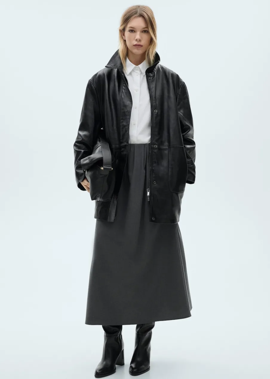 OpisCienka tkanina. Model evasé. Krój do kolan. Kryte zapięcie na suwak z boku. Ozdobne zakładki.