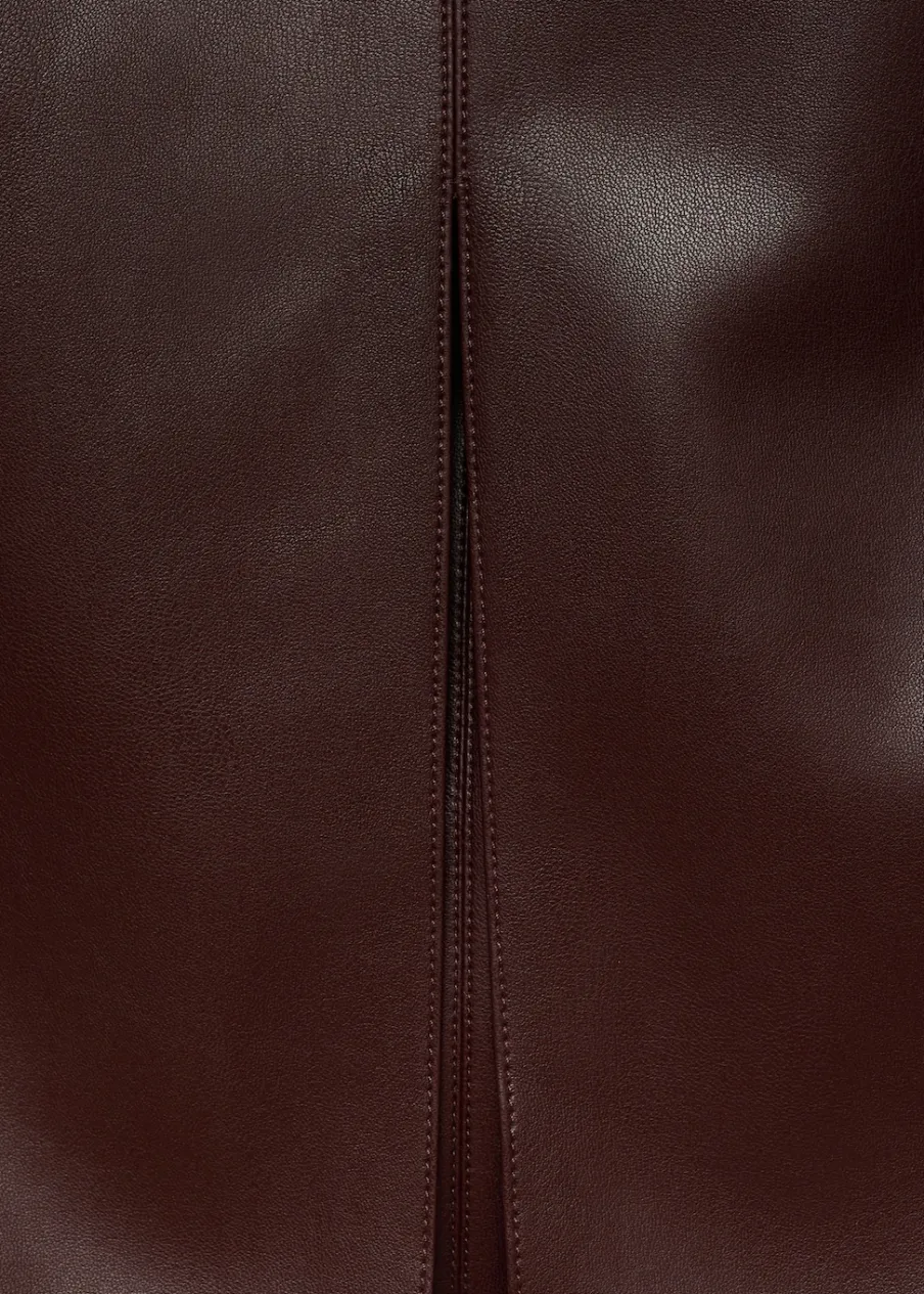 Efekt skóry. Krój do kolan. Model prosty. Zapięcie z tyłu na kryty suwak. Rozcięcie z tyłu. Stylizacje biurowe. Dostępne w Plus Size. Modelka ma 175 cm wzrostu i nosi rozmiar S/36. Modelka ma 181 cm wzrostu i nosi rozmiar S/36.