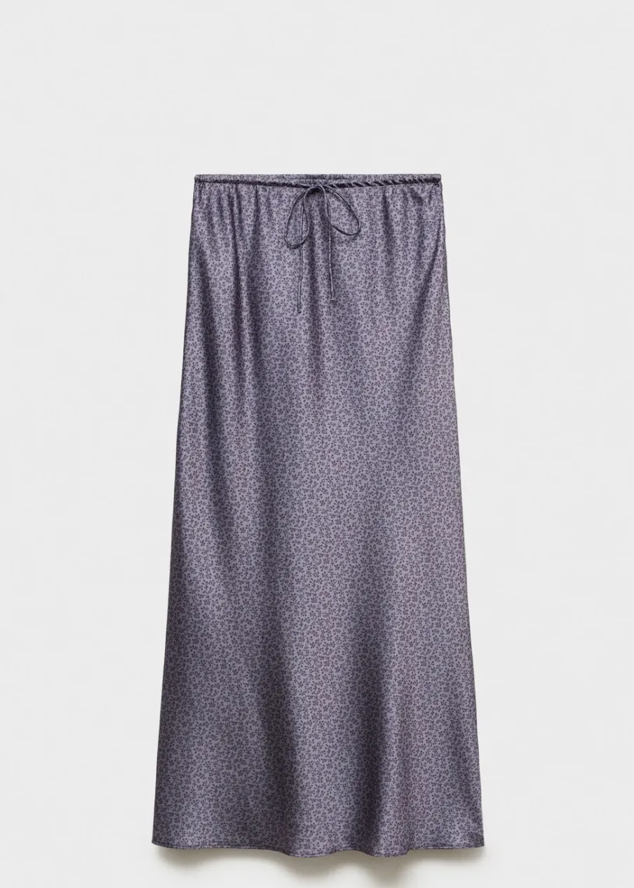 Satynowa tkanina. Krepowa tkanina lejąca. Kwiatowy wzór. Wzór w drobne kwiaty. Model długi. Regulowane wiązanie w talii. Model prosty. Modelka ma 168 cm wzrostu i nosi rozmiar M.