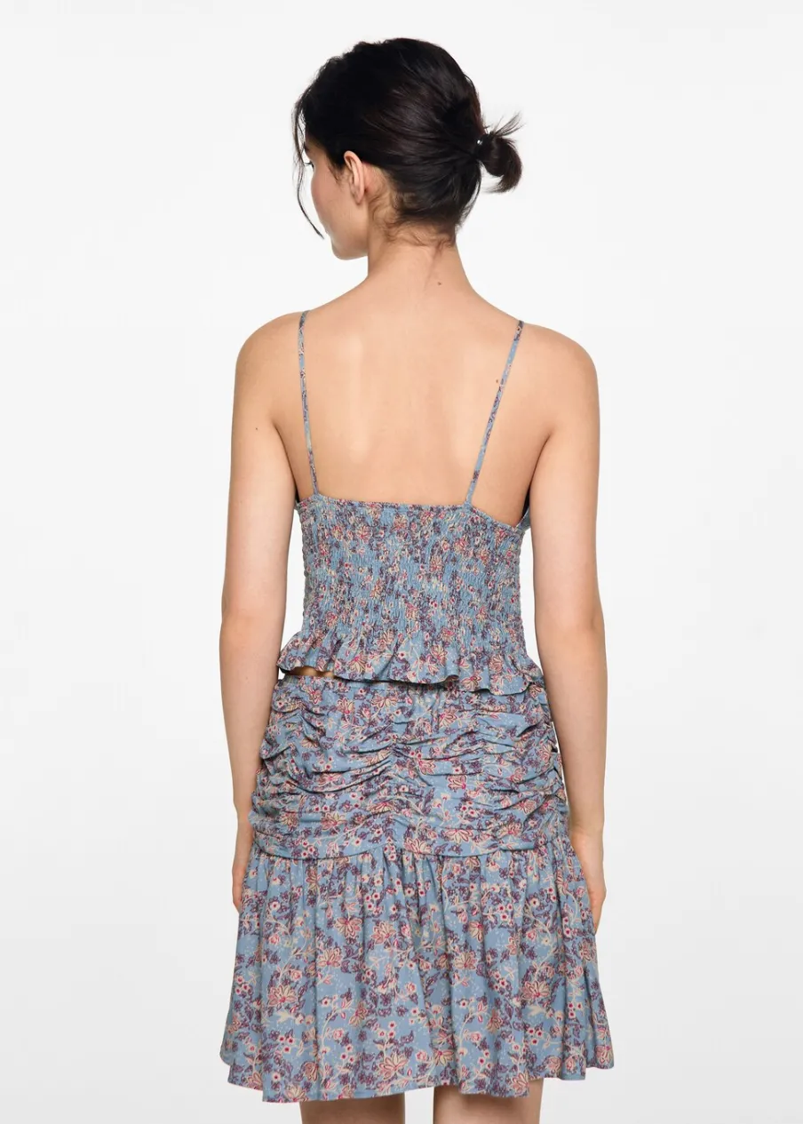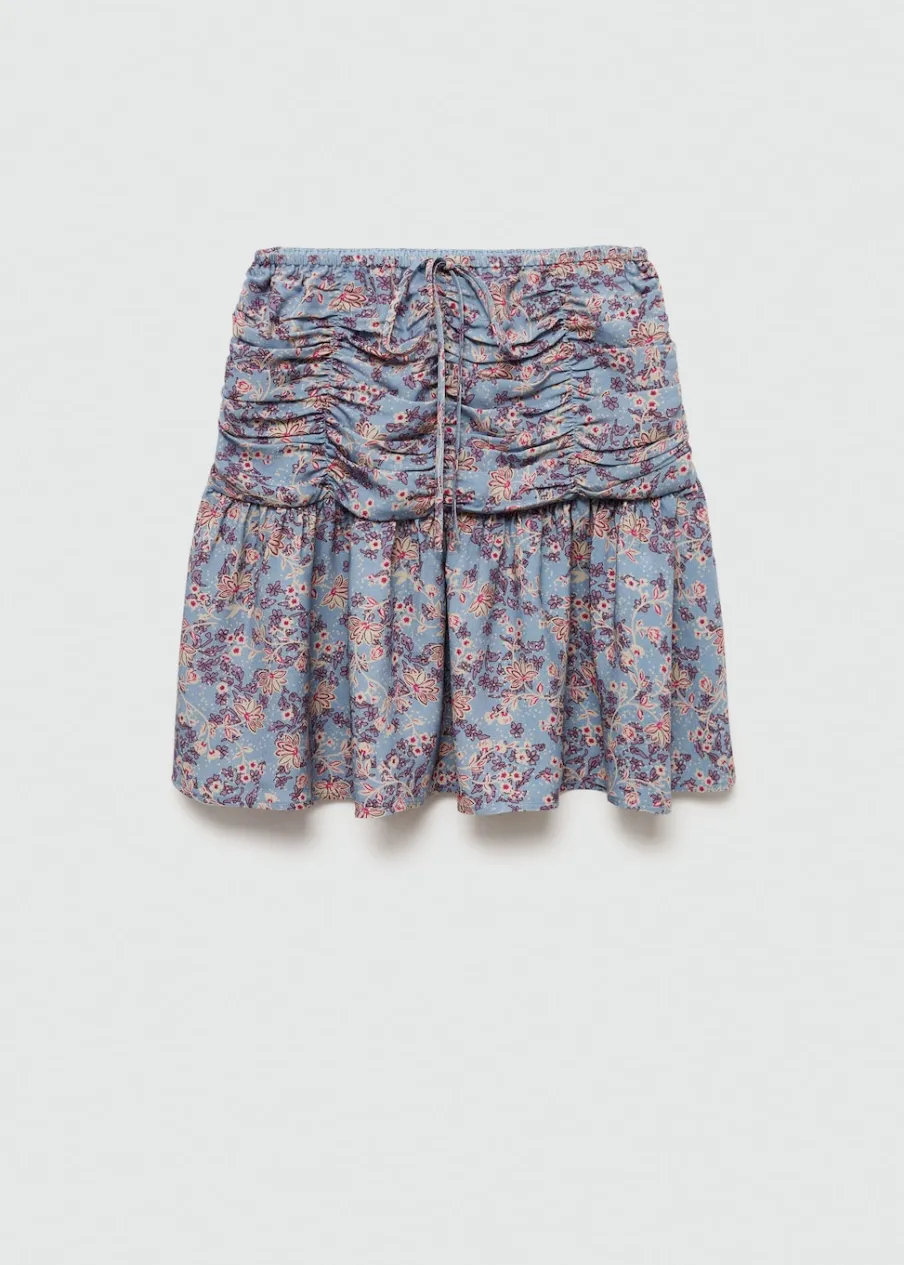 Krótki krój. Wzór w kwiaty. Dostępny zestaw total look. Elastyczny pas. Zapięcie ze sznurkiem do regulacji.
