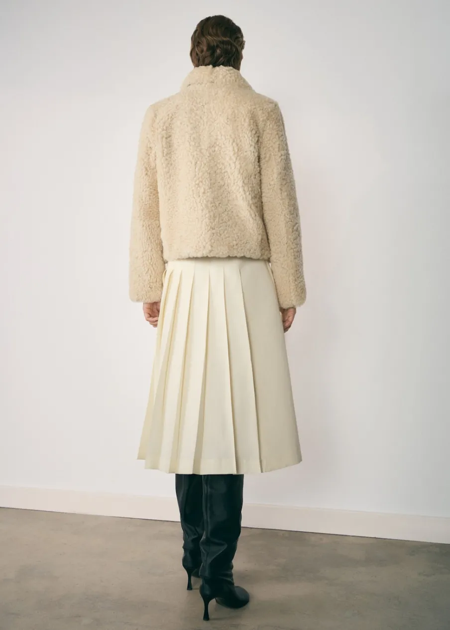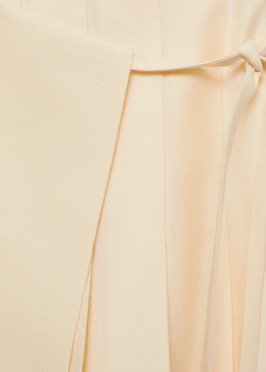OpisTkanina mieszana z lyocellem. Model evasé. Krój do kolan. Fason z zakładkami. Model zakładany. Wiązanie z boku….