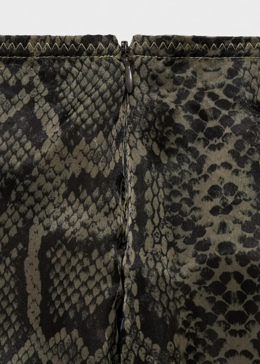 OpisTkanina organza. Półprzezroczysta tkanina. Krój do kolan. Model ołówkowy. Zwierzęcy wzór. Średni stan. Elast…
