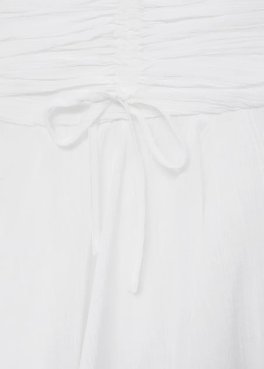 Krótki krój. Model evasé. Średni stan. Kryte zapięcie na zamek z boku. Asymetryczny dół. Ozdobne kokardki. Wewnętrzna podszewka. Tkanina z 100% bawełny.