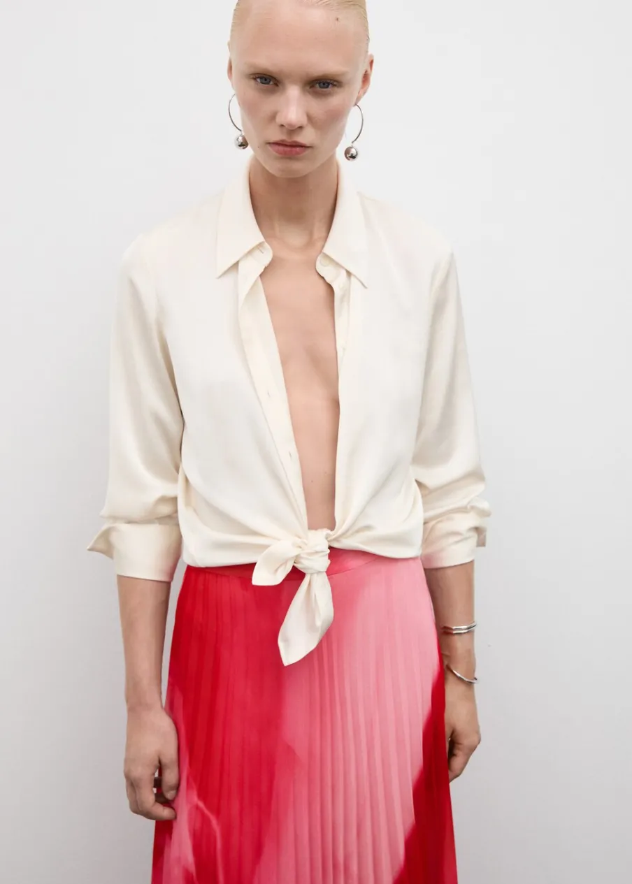 OpisLejąca tkanina. Krój do kolan. Plisowanie. Kryte zapięcie na zamek z boku. Asymetryczny dół. Wewnętrzna podsze…