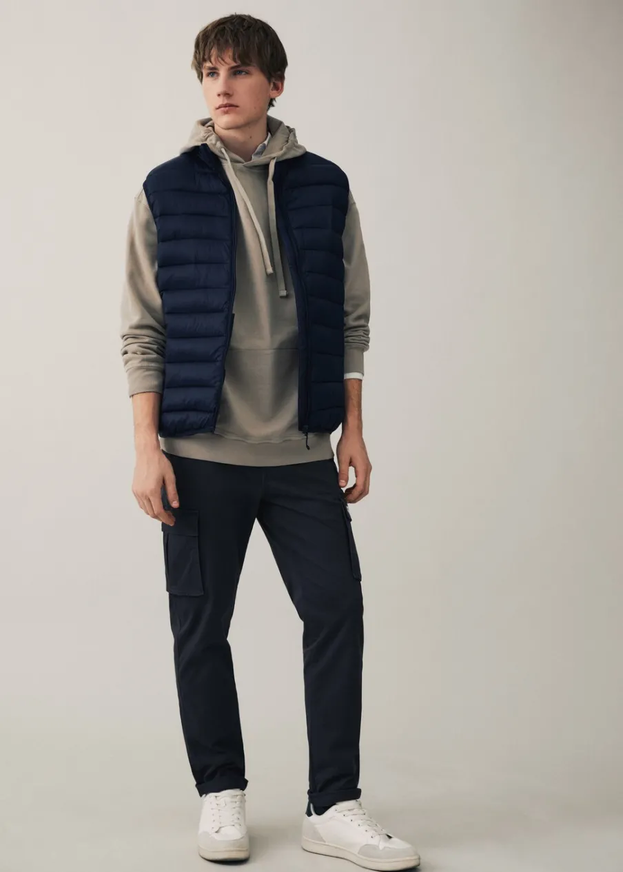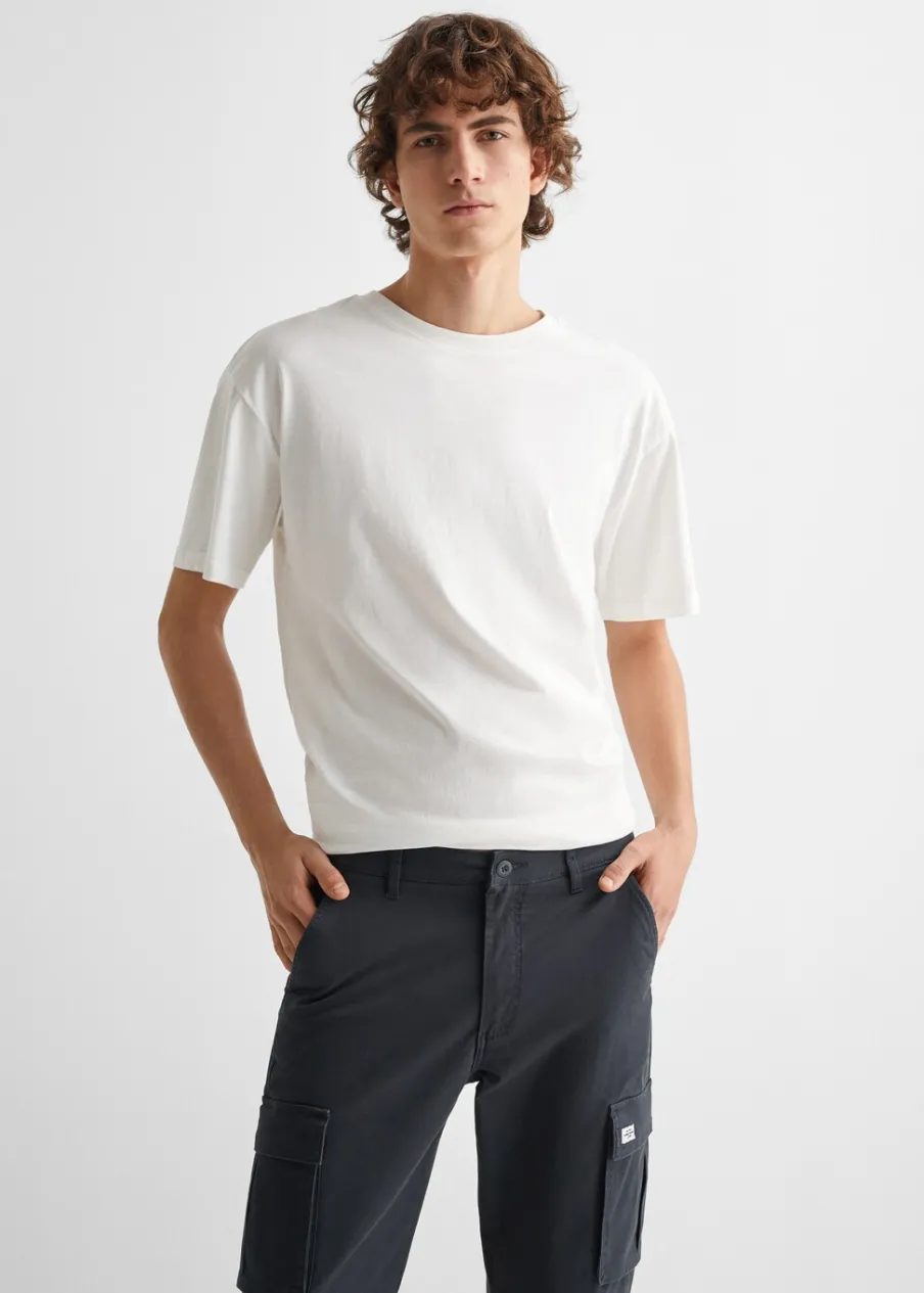 OpisTkanina bawełniana. Model prosty. Model długi. Dwie kieszenie. Dwie kieszenie cargo. Zapięcie na suwak i guzik.