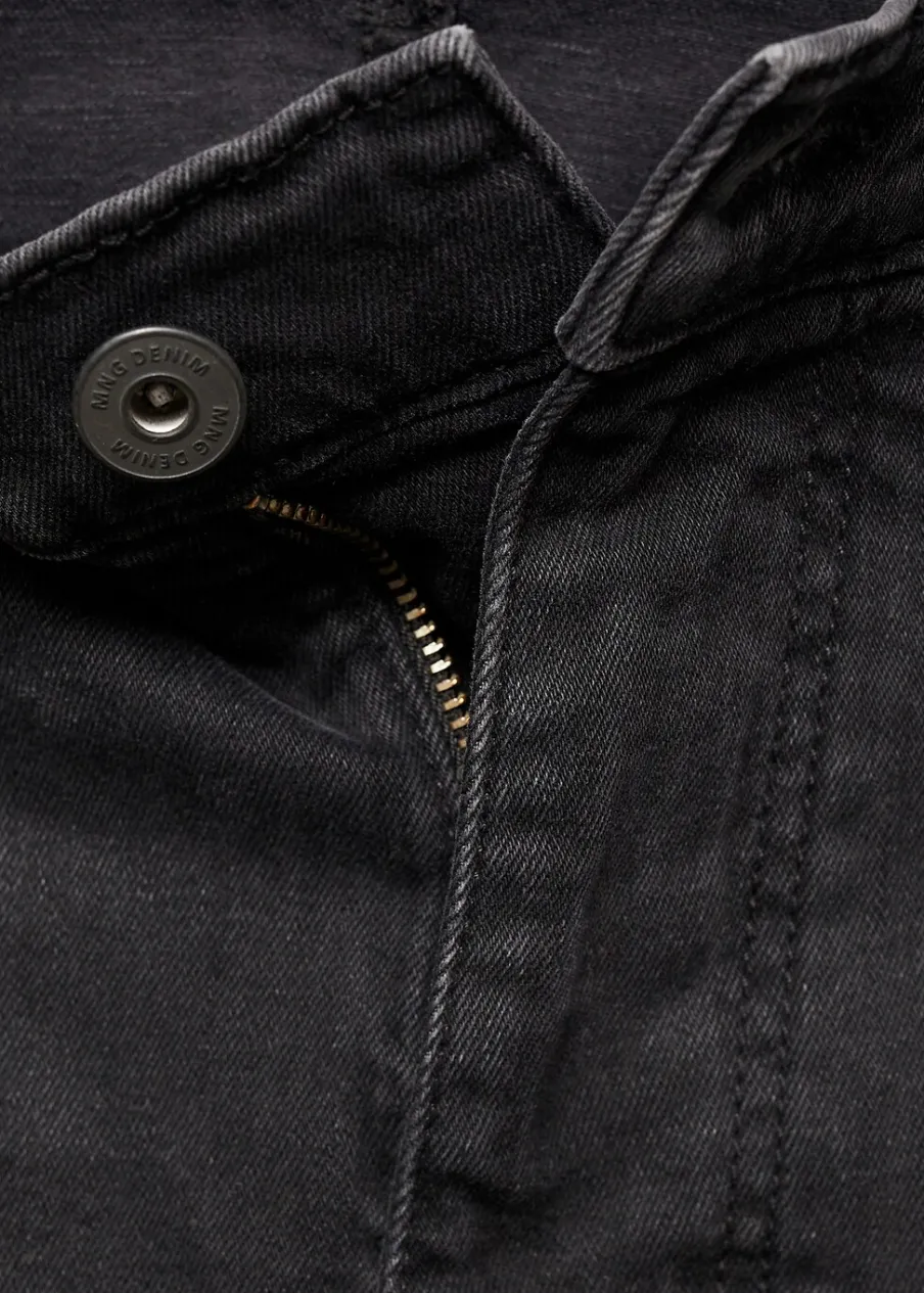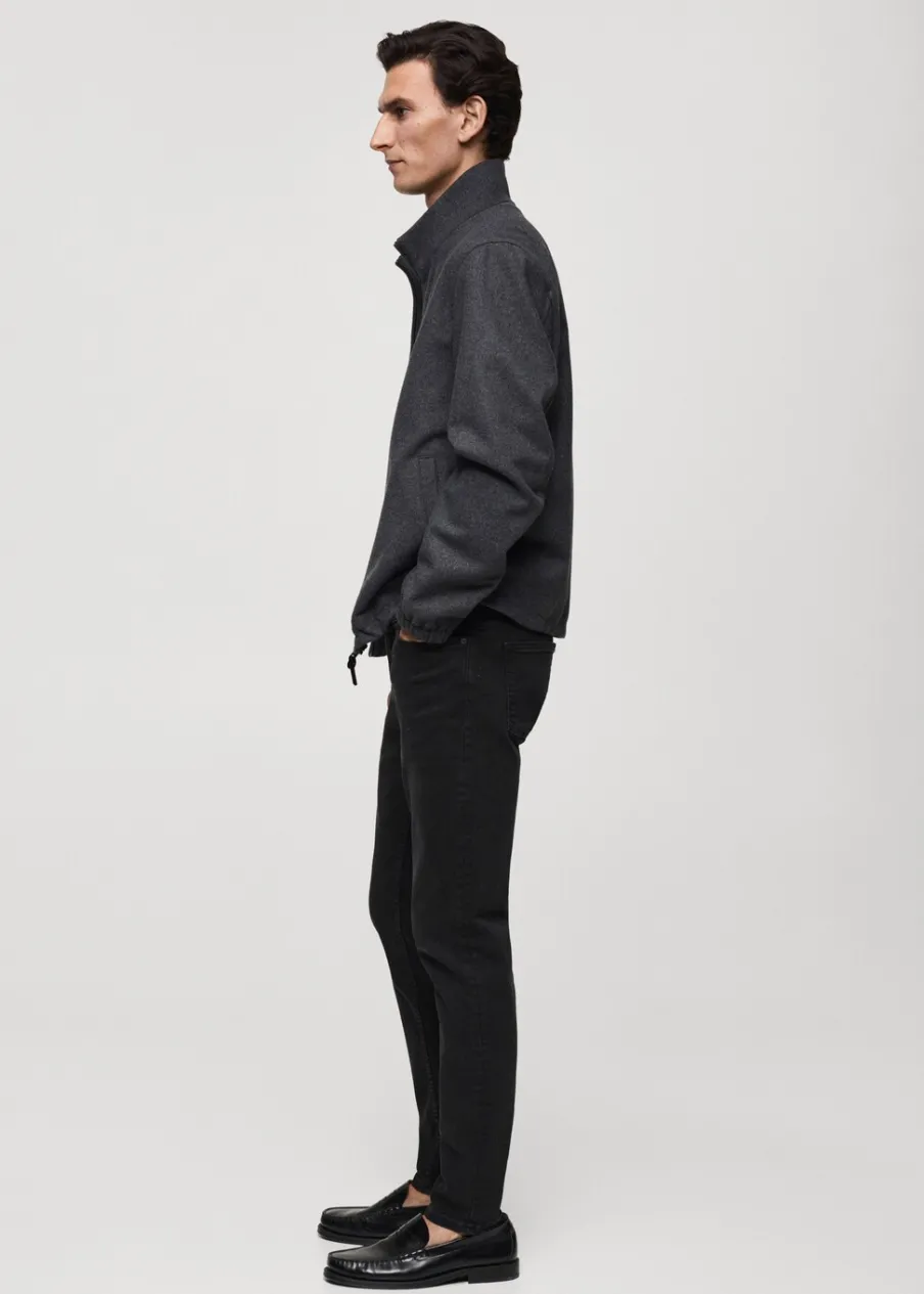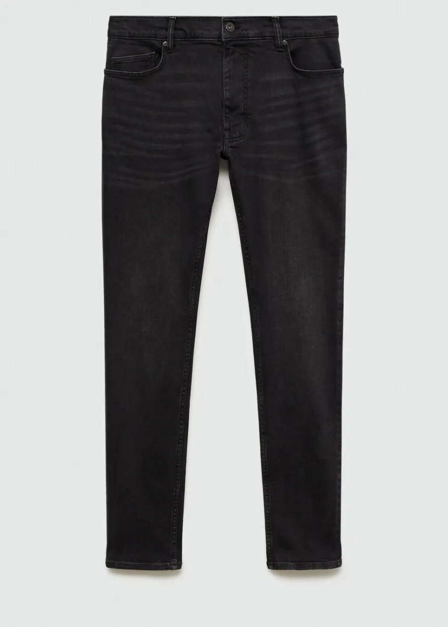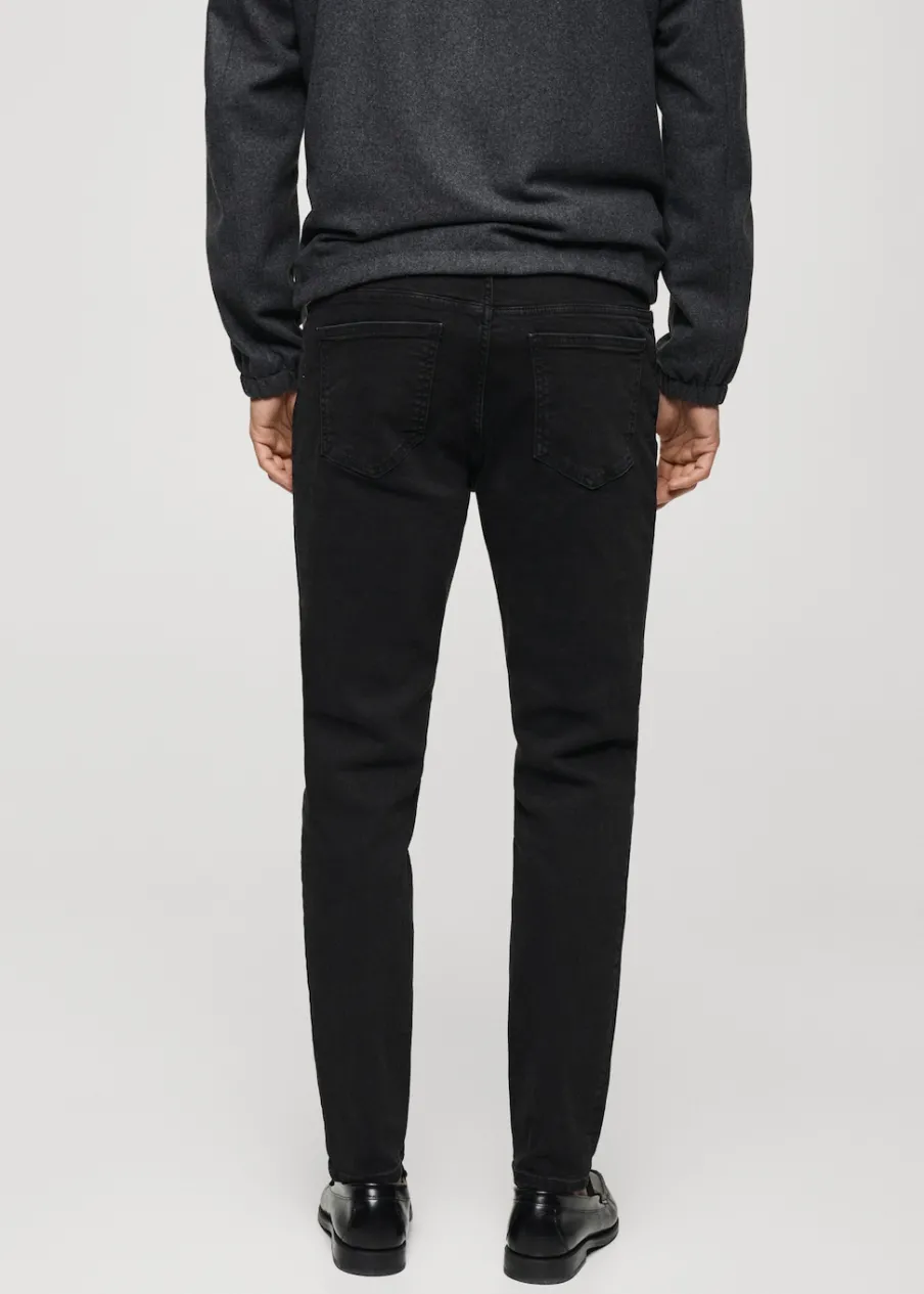 Krój skinny: jeansy bardziej dopasowane. Tkanina bawełniana. Jeansowy styl. Czarny. Szlufki na pasek. Średni stan. Zapięcie na suwak i guzik. Kieszeń na bilon. Dwie kieszenie nakładane z tyłu. Model ma 185 cm wzrostu i nosi rozmiar 42. Denim w jasnym kolorze dostępny tylko online.