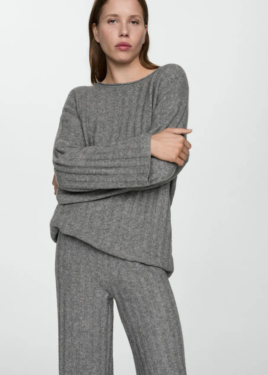 Dzianina o średniej grubości. Tkanina ze ściągaczowej dzianiny. Model długi. Model prosty. Elastyczny pas. Total look.