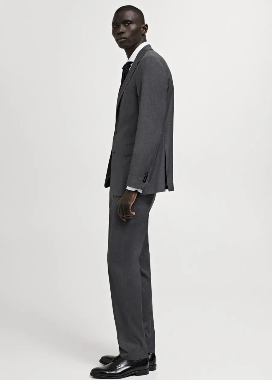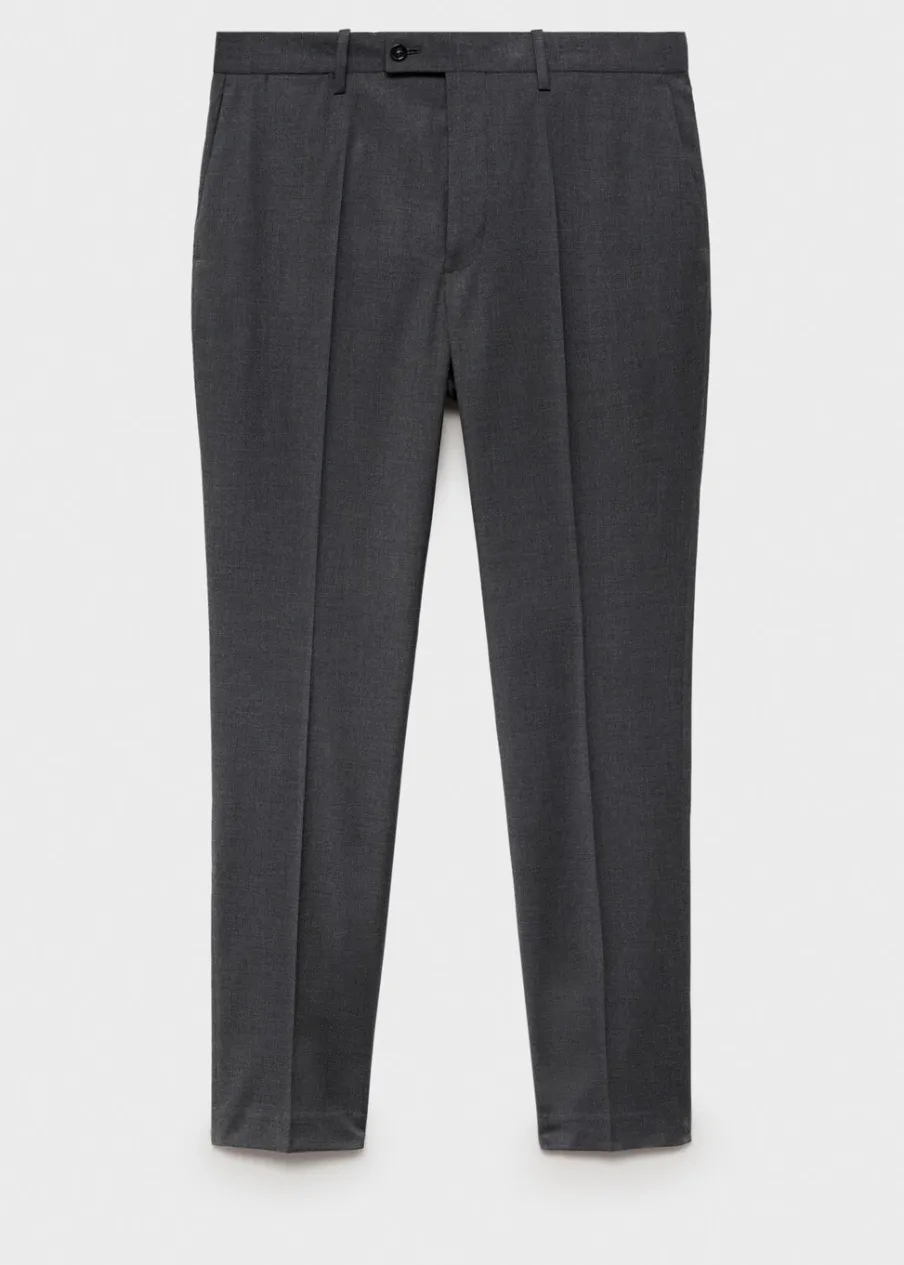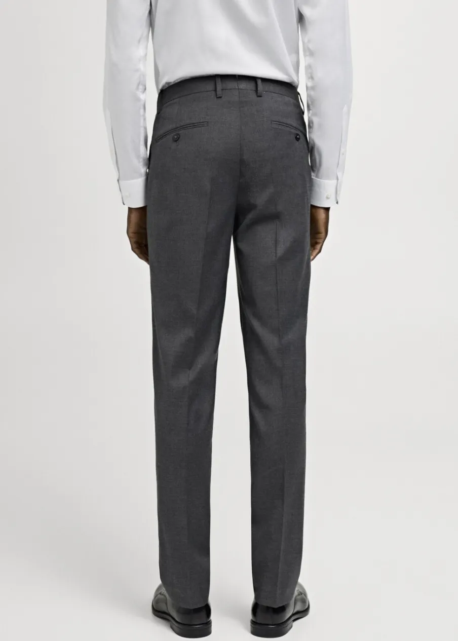 Slim-fit. Zaprasowany kant z przodu i z tyłu. Szlufki na pasek. Zapięcie na guziki, zamek i haftkę. Dwie kieszenie boczne. Dwie wpuszczane kieszenie z tyłu. Model ma 185 cm wzrostu i nosi rozmiar 42.