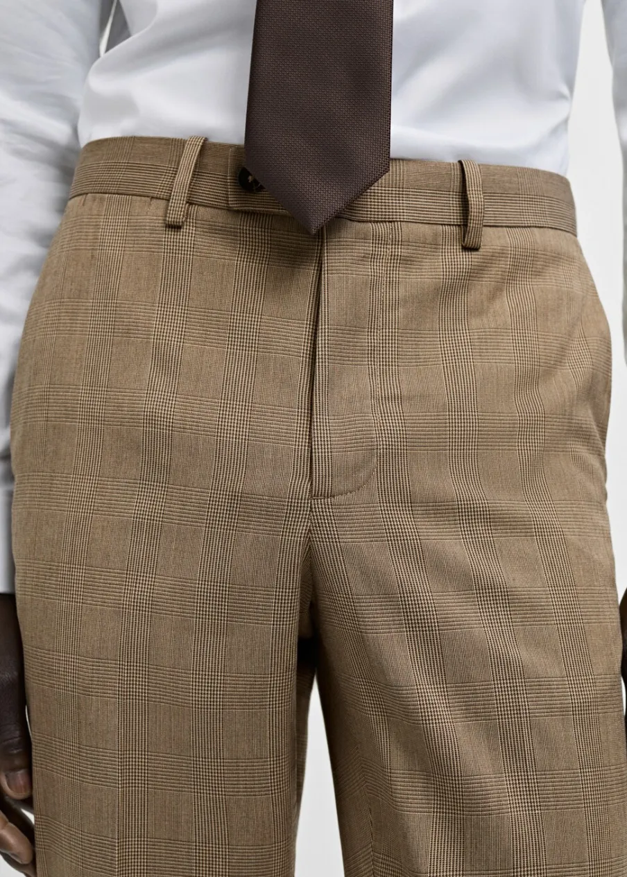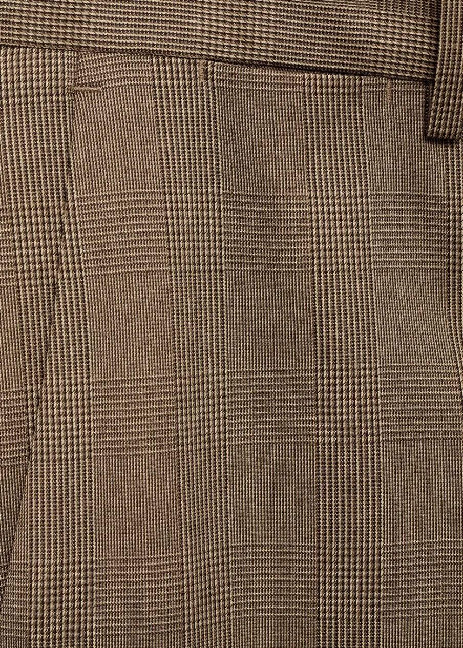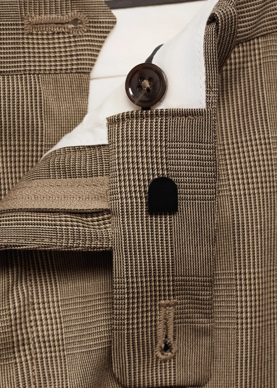 OpisSlim Fit. Wzór w kratę księcia Walii. Zaprasowany kant z przodu i z tyłu. Szlufki na pasek. Dwie kieszenie boczn…