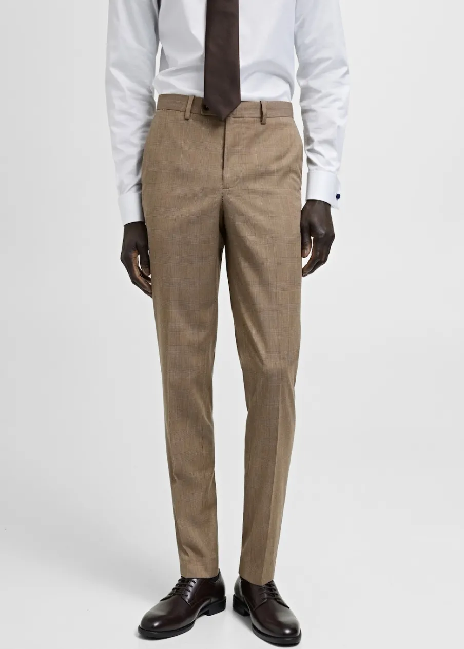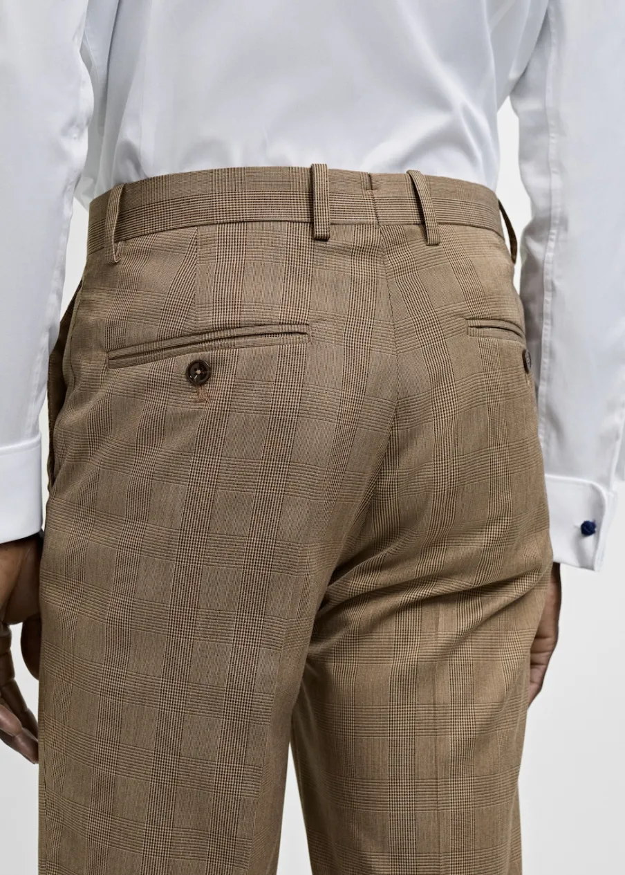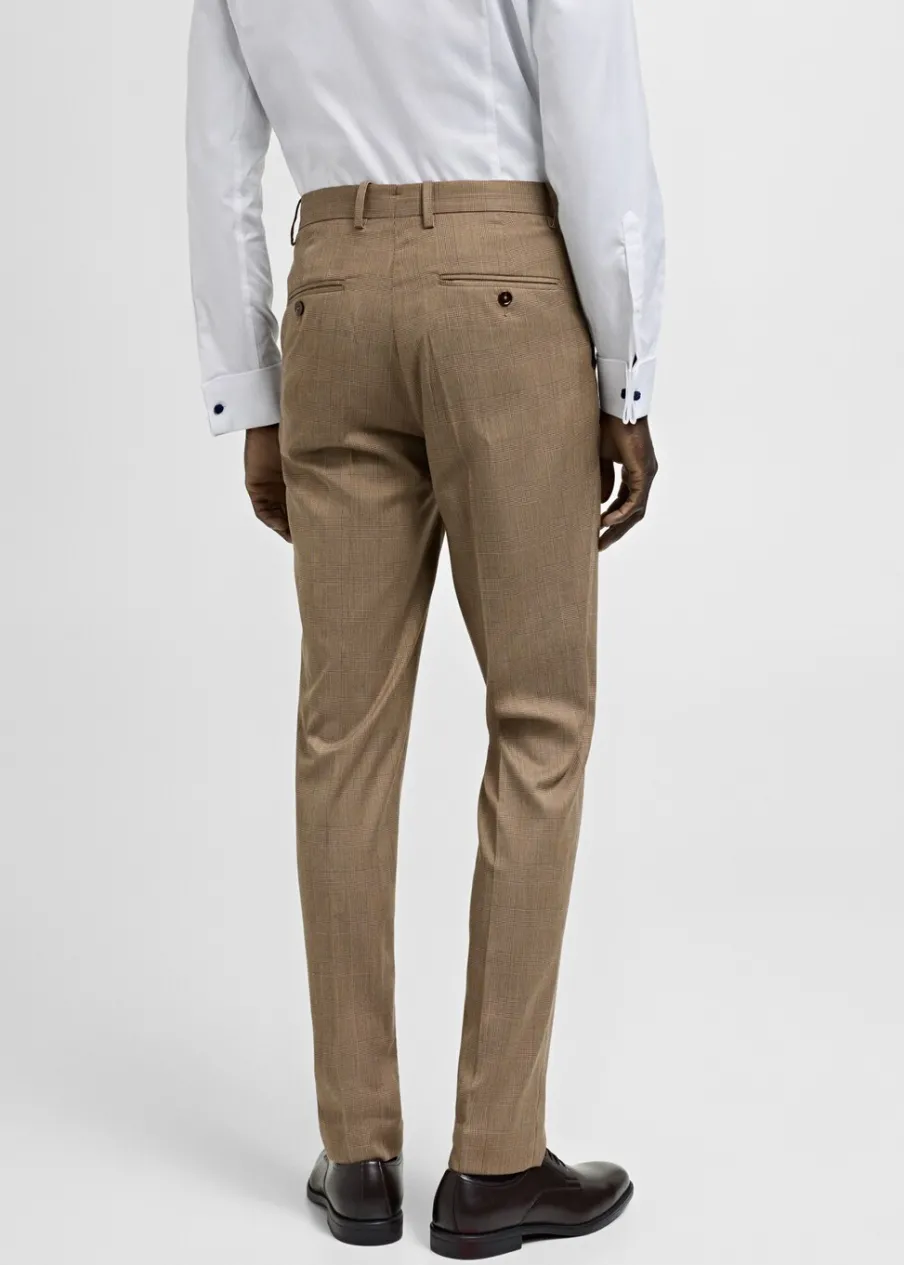 OpisSlim Fit. Wzór w kratę księcia Walii. Zaprasowany kant z przodu i z tyłu. Szlufki na pasek. Dwie kieszenie boczn…