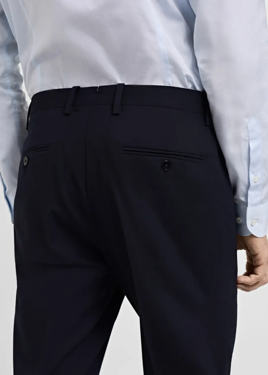 ESSENTIALS: Made to last. Slim-fit. 100% wełna. Zaprasowany kant. Zapięcie na zamek, haftkę i dwa guziki z przodu. Szlufki na pasek. Dwie kieszenie boczne. Kieszeń na bilon. Dwie wpuszczane kieszenie z tyłu. Model ma 185 cm wzrostu i nosi rozmiar 42.