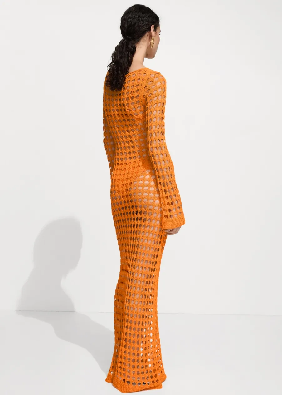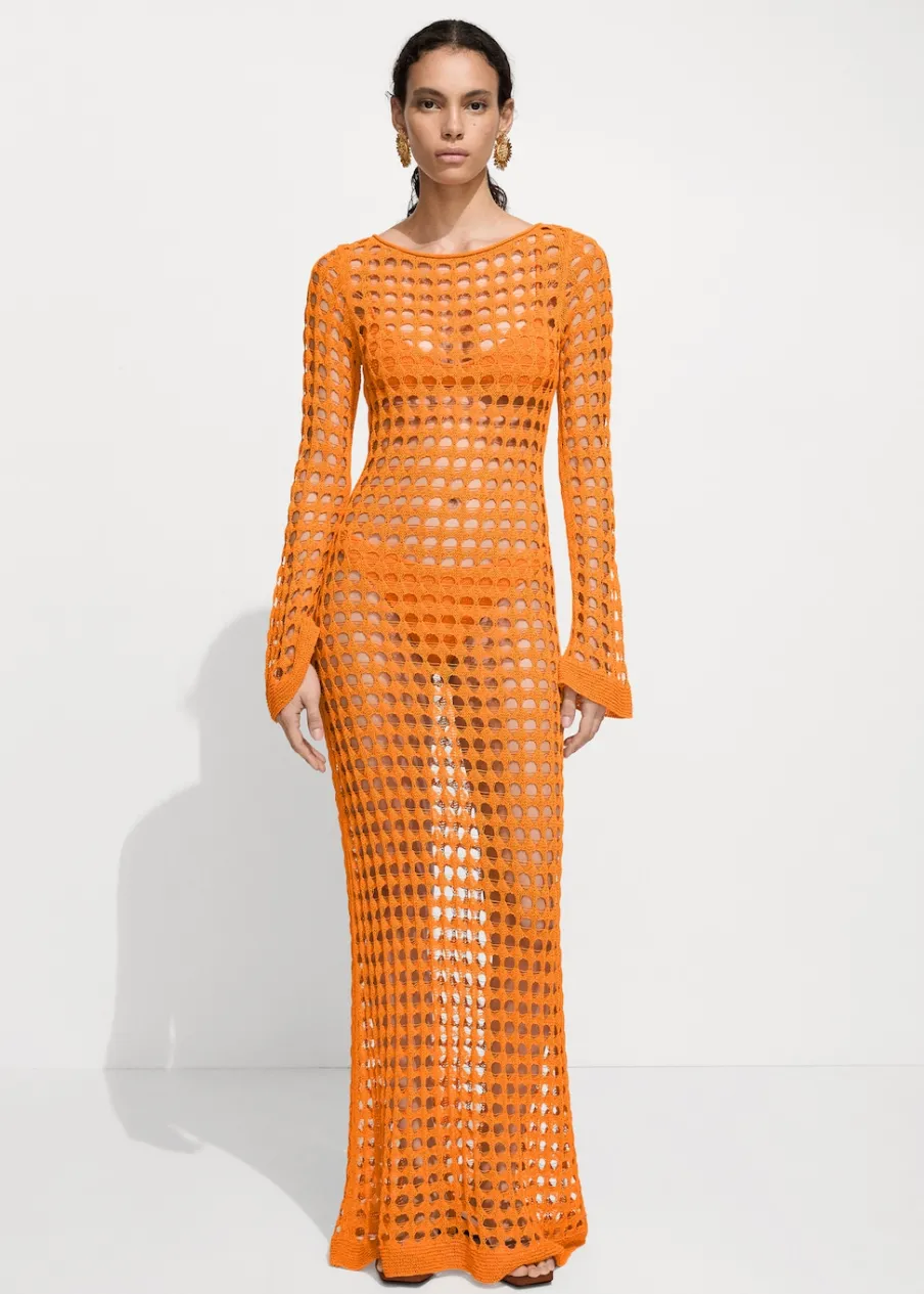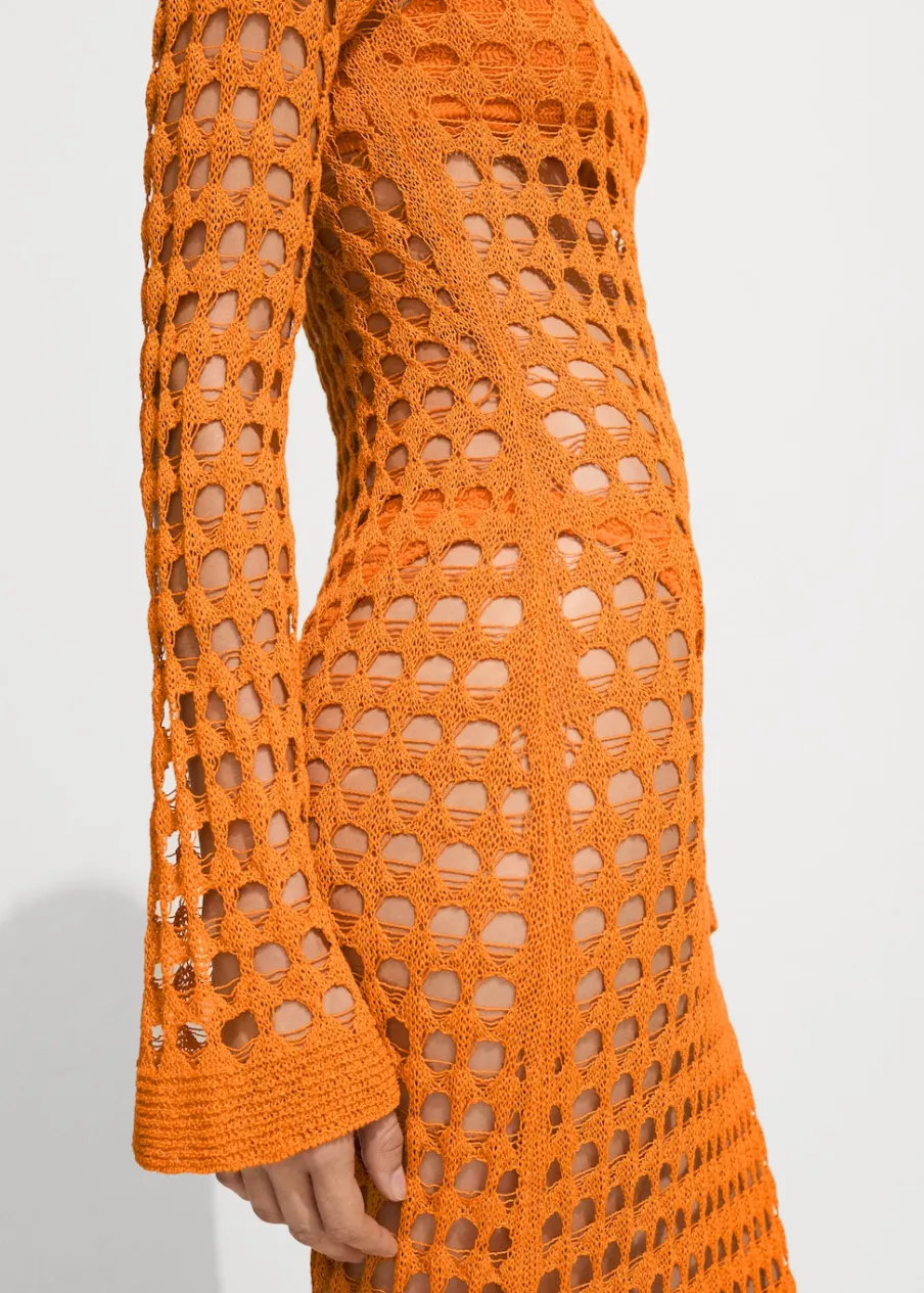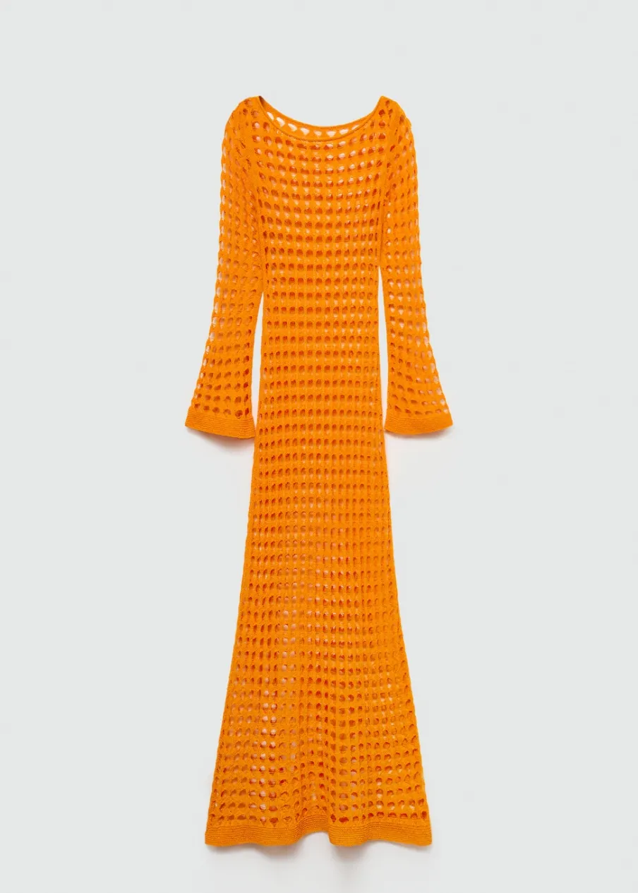 Tkanina mieszanka bawełny. Dzianina średniej grubości. Model długi. Model prosty. Ażurowy model. Okrągły dekolt. Długi rękaw. Bez zapięcia.