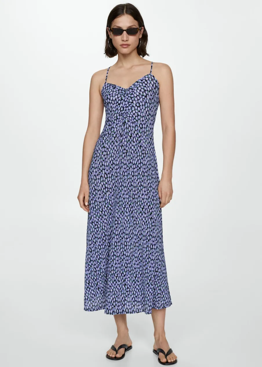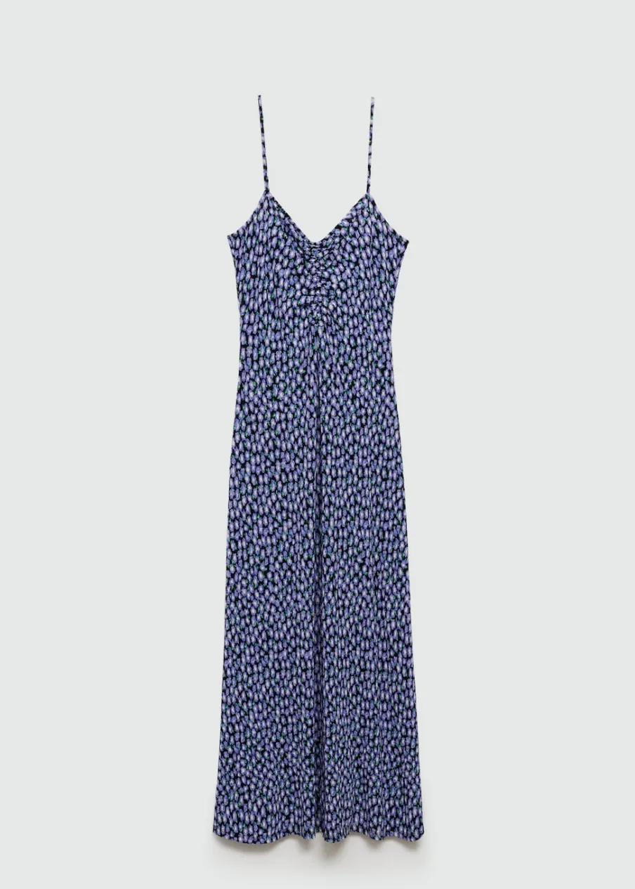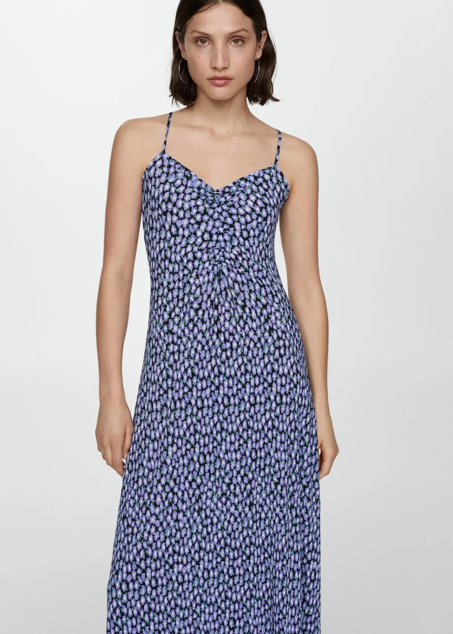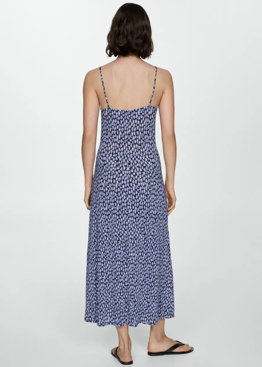 Lejąca tkanina. Model prosty. Model długi. Dekolt V. Bez rękawów. Cienkie ramiączka. Bez zapięcia. Nadruk.