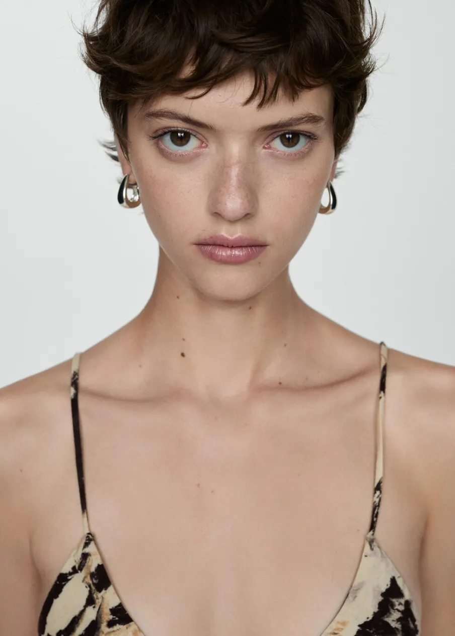 OpisLejąca tkanina. Model evasé. Model długi. Zwierzęcy wzór. Dekolt V. Bez rękawów. Cienkie ramiączka. Wiązani…