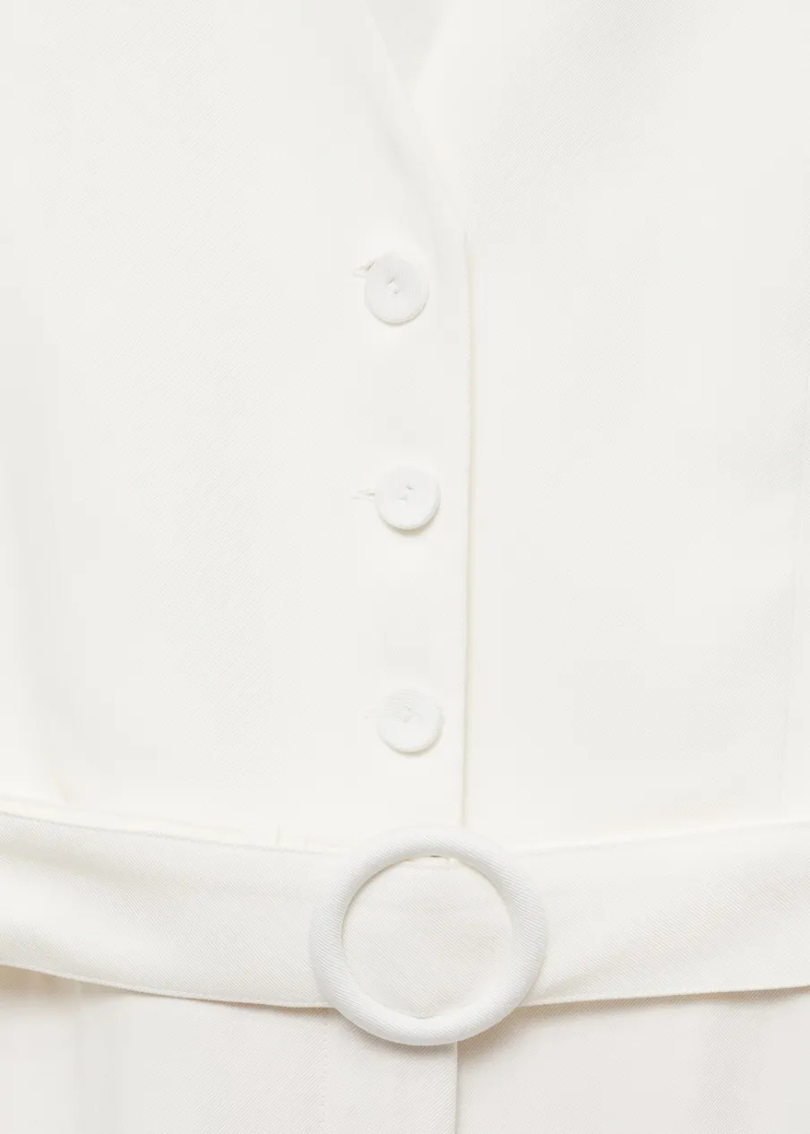 Lejąca tkanina. Model długi. Model prosty. Dekolt V. Bez rękawów. Szerokie ramiączka. Szlufki. Wewnętrzna podszewka. Detal z zakładkami. Regulowany pasek. Kolekcja wizytowa. Zapięcie na guziki z przodu.