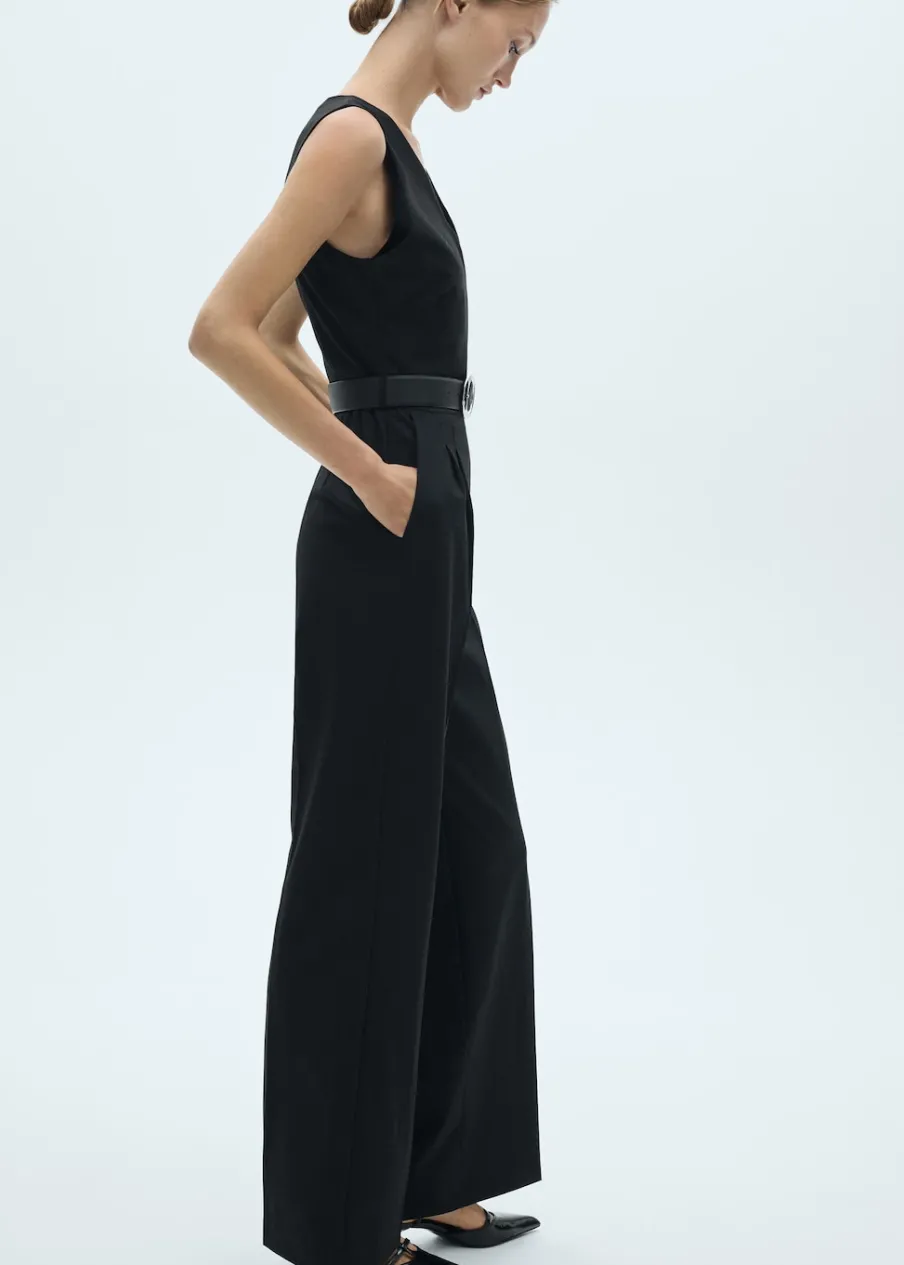 Lejąca tkanina. Model prosty. Model długi. Dekolt V. Bez rękawów. Szerokie ramiączka. Dwie kieszenie boczne. Szlufki. Zapięcie z tyłu na kryty suwak. Regulowany pasek.