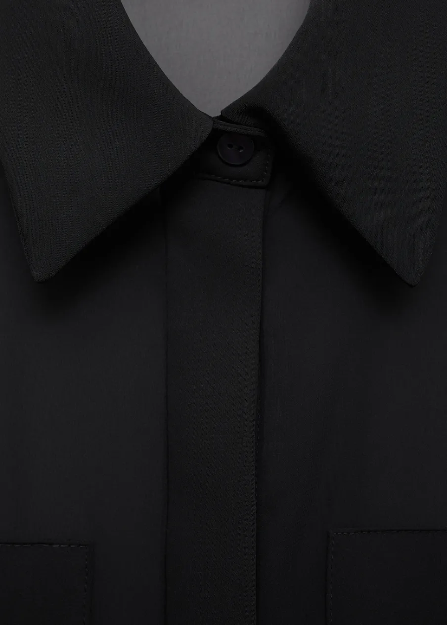 OpisLejąca tkanina. Półprzezroczysta tkanina. Model prosty. Koszulowy kołnierz. Długi rękaw z guzikami na mankieta…