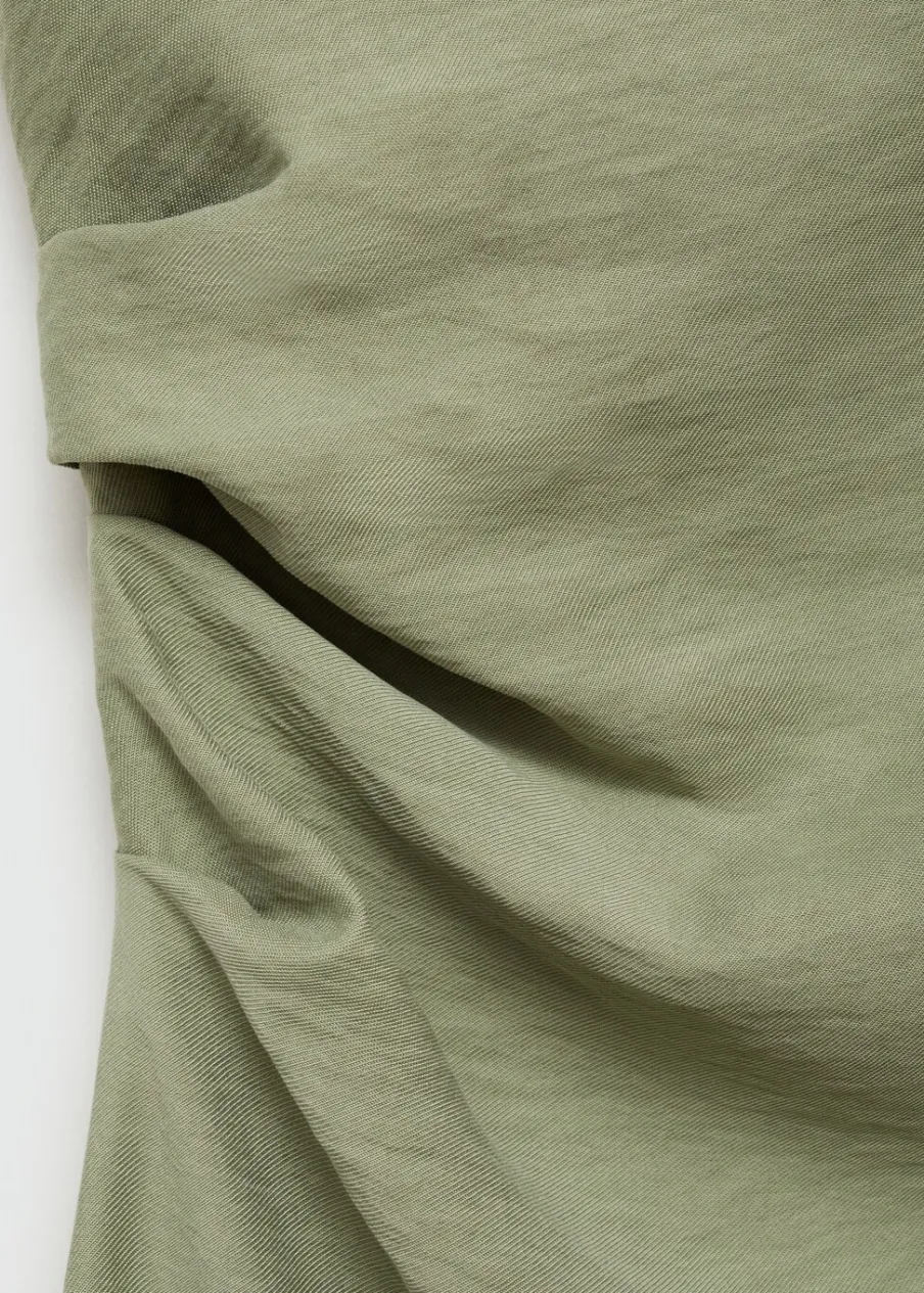 OpisTkanina z mieszanki modalu. Lejąca tkanina. Krój do kolan. Model prosty. Marszczenie na dekolcie. Bez rękawów. S…