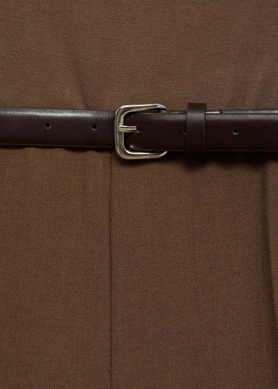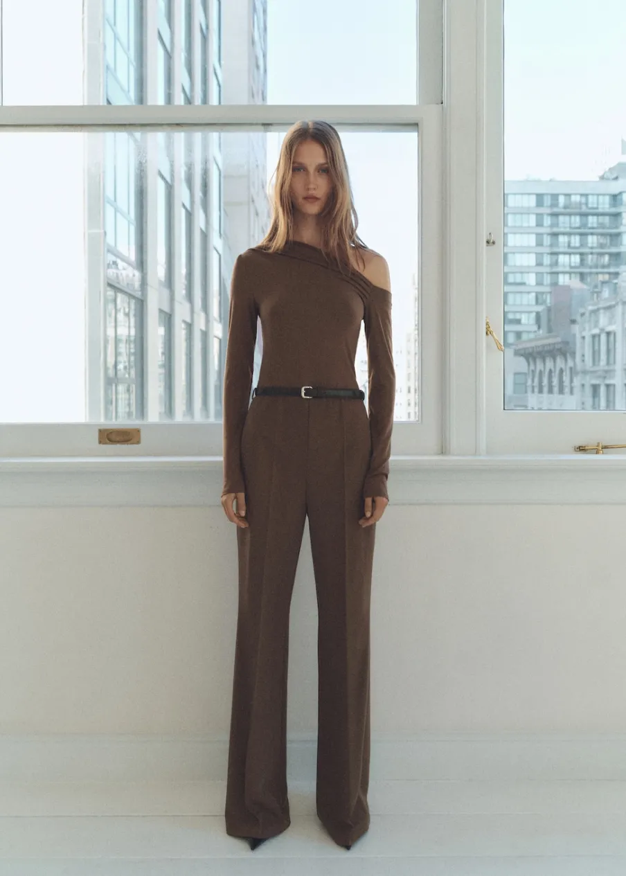 Slim-fit. Model prosty. Zapięcie na zamek z boku. Model długi. Długi rękaw. Drapowany dekolt. Asymetryczny dekolt. Pasek zapinany na klamrę. Bez podszewki.