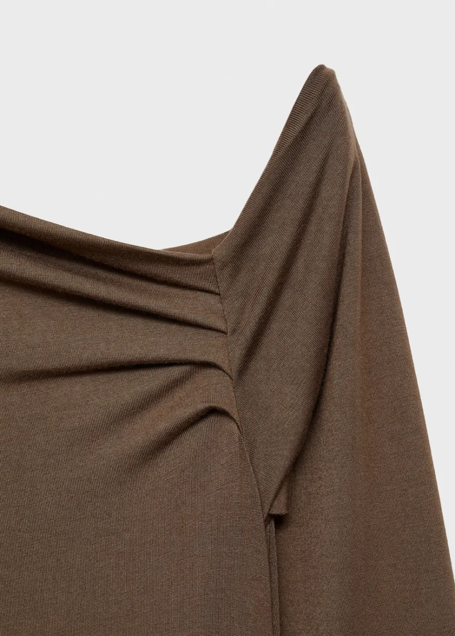 OpisSlim-fit. Model prosty. Zapięcie na zamek z boku. Model długi. Długi rękaw. Drapowany dekolt. Asymetryczny dekol…