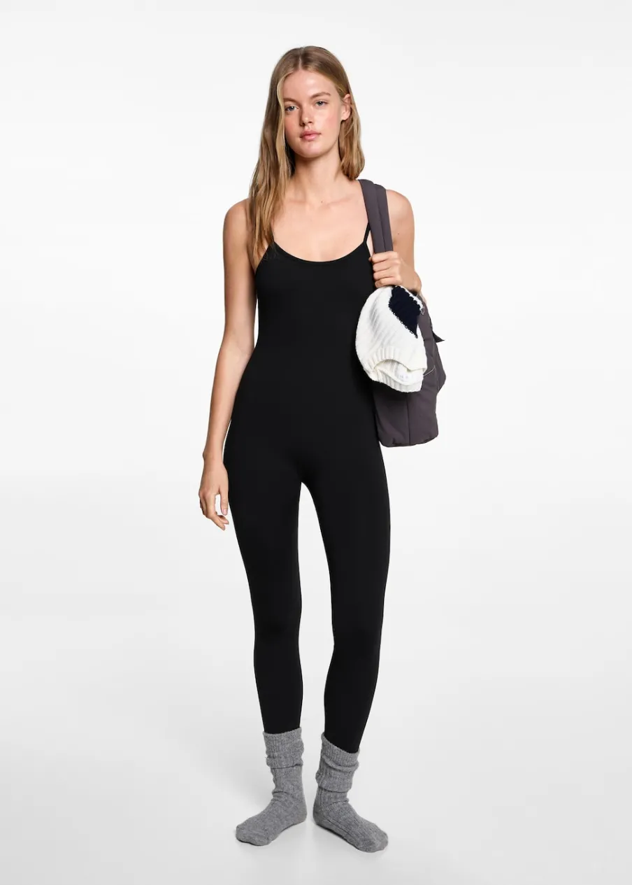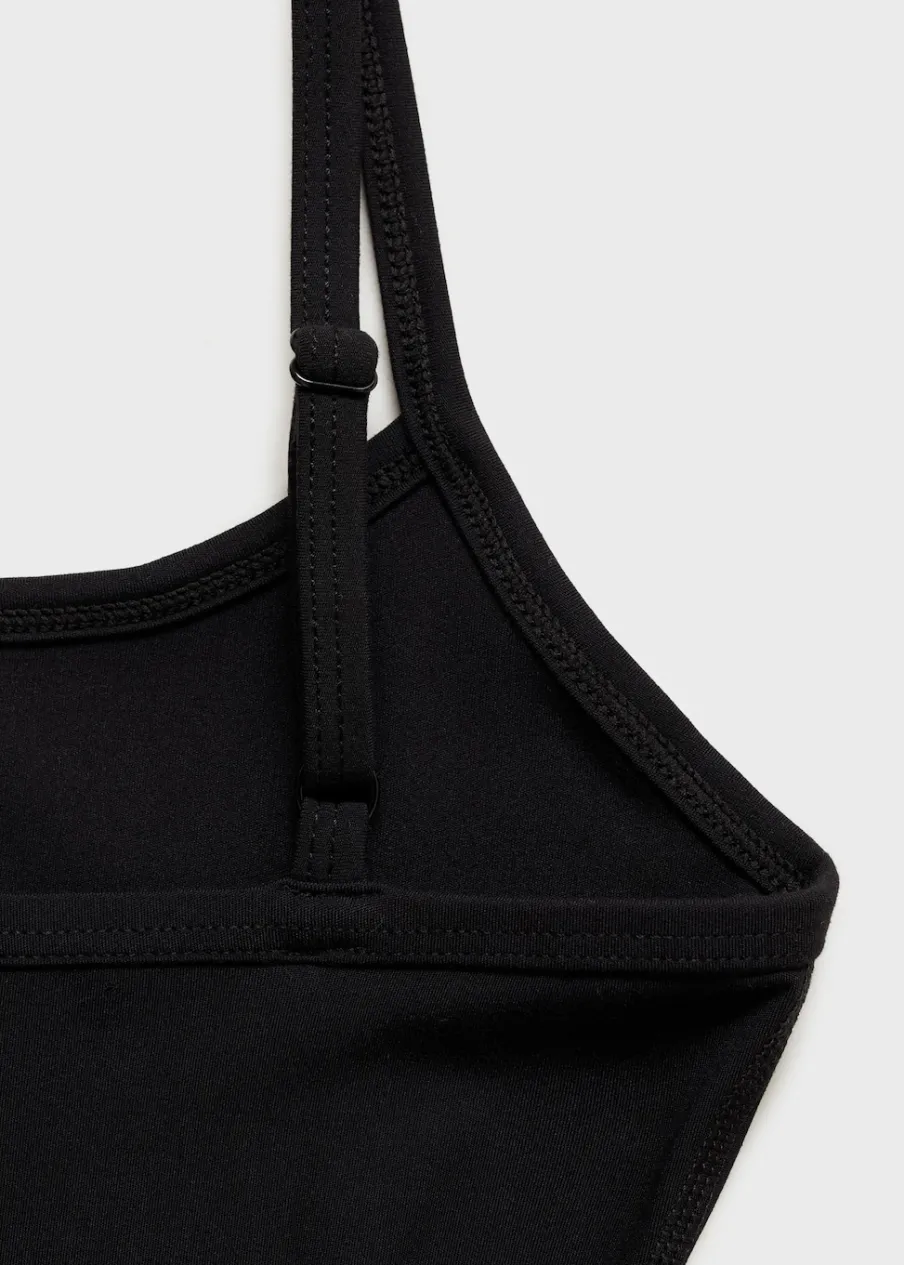 OpisTechniczna tkanina. Elastyczna tkanina. Slim-fit. Model długi. Okrągły dekolt. Cienkie, regulowane ramiączka. Pl…