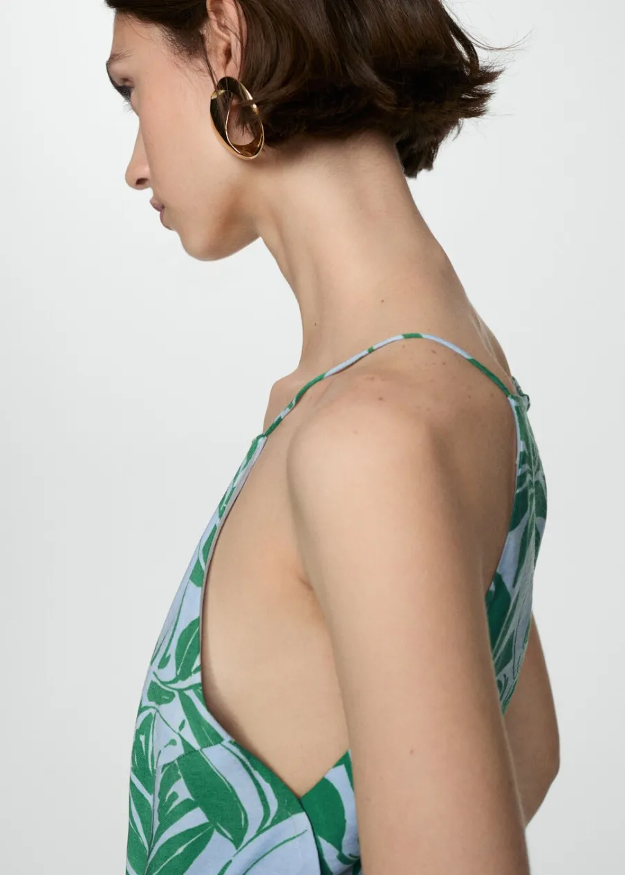 Lejąca tkanina. Model długi. Model prosty. Kwiatowy wzór. Okrągły dekolt. Bez rękawów. Cienkie ramiączka. Dwie kieszenie boczne. Zapięcie na guzik z tyłu. Zapięcie z tyłu na kryty suwak.
