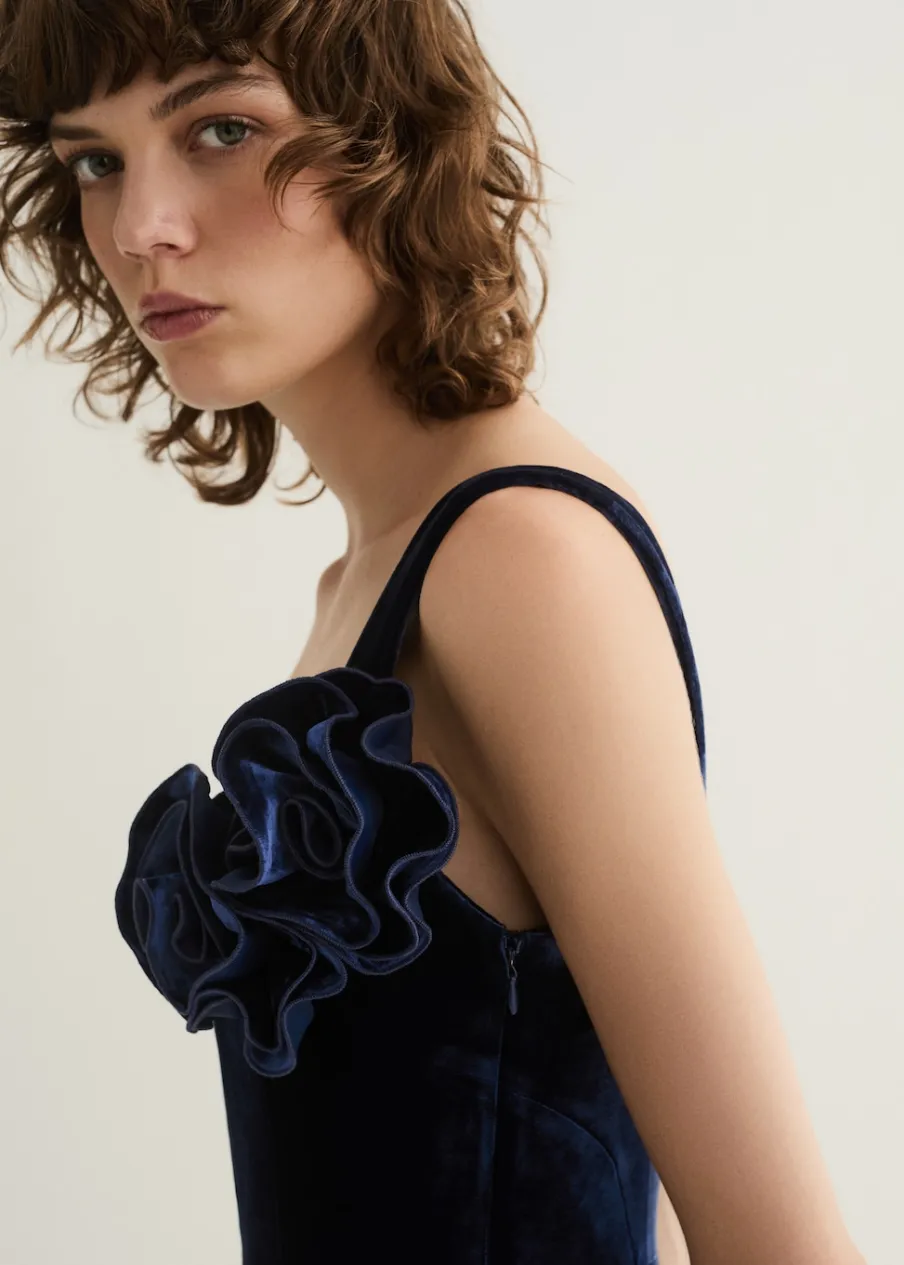 Wewnętrzna podszewka. Kolekcja wizytowa. Artykuły z kolekcji CAPSULE można wymienić lub zwrócić w ciągu 14 dni od daty wysyłki. Łączymy elegancję i trendy, aby stworzyć ten model z aksamitu. Rozszerzany krój, szerokie ramiączka i odpinane kwiaty zapewniają wygodę i stylowy wygląd. Stanie się Twoim ulubieńcem. Aksamitna tkanina. Model wcięty. Model długi. Prosty dekolt. Szerokie ramiączka. Dekolt na plecach. Kwiatowa ozdoba. Średnia wielkość. Zapięcie z boku. Slim-fit. Tylko podszewka. Dekolt.