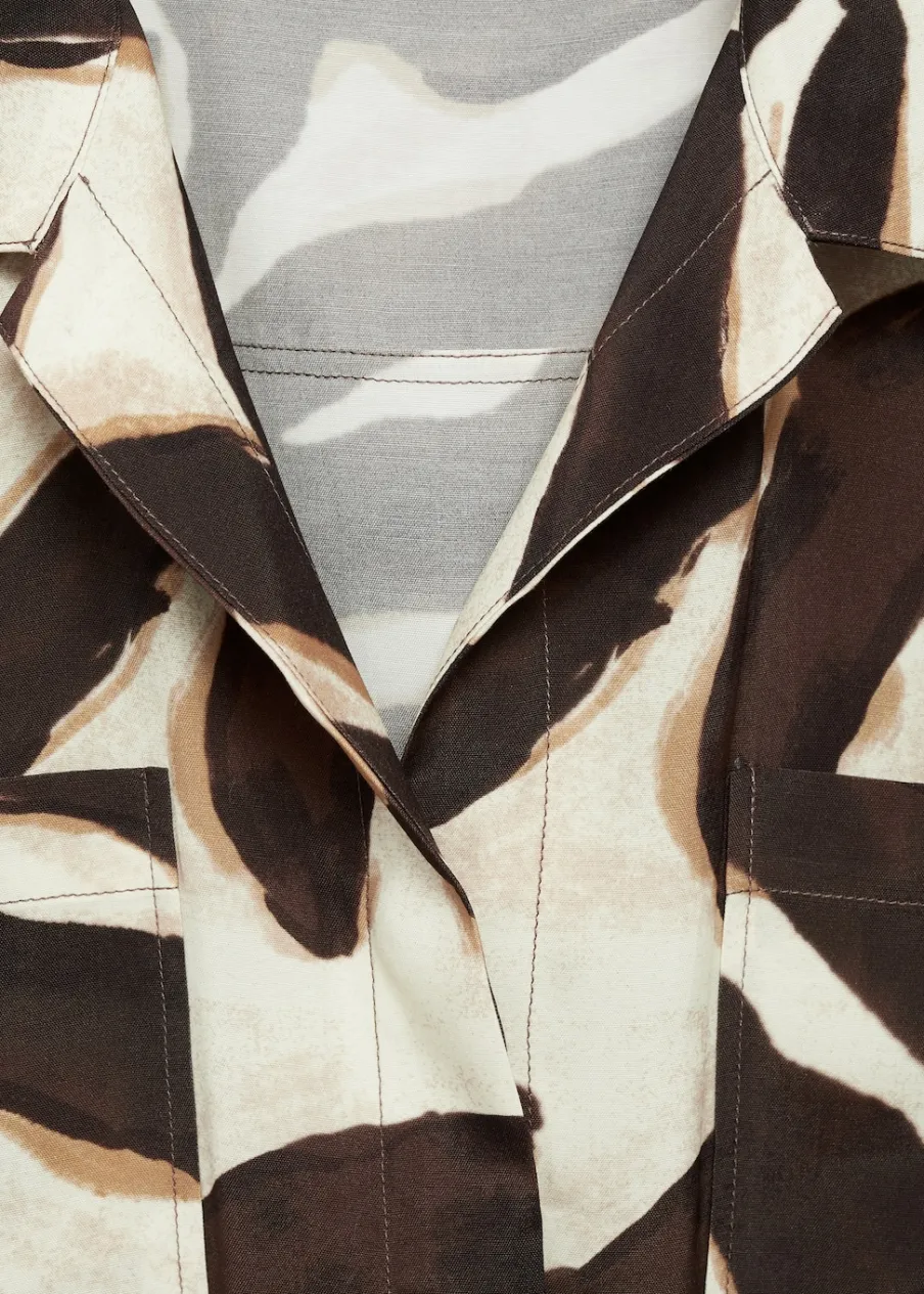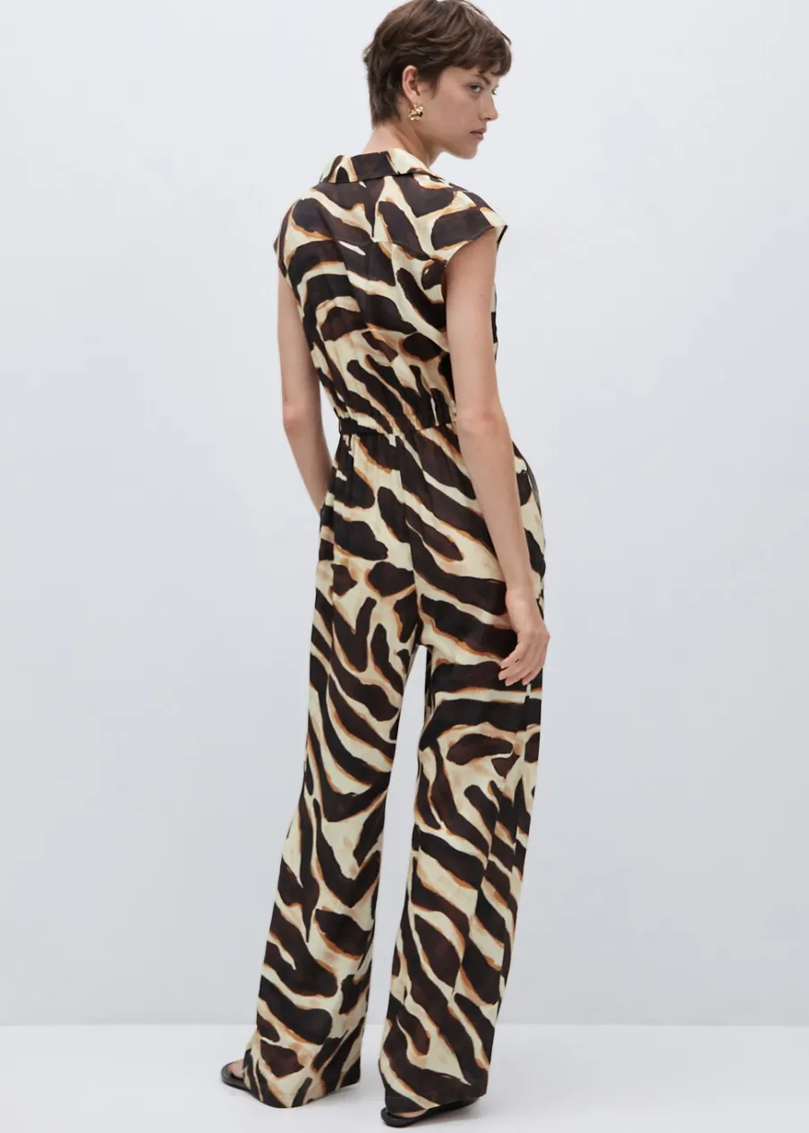 Lejąca tkanina. Model długi. Model prosty. Zwierzęcy wzór. Koszulowy kołnierz. Bez rękawów. Elastyczny pas. Dwie kieszenie nakładane z przodu. Dostępne w Plus Size. Kryte zapięcie na guziki z przodu. Modelka ma 176 cm wzrostu i nosi rozmiar S/36.