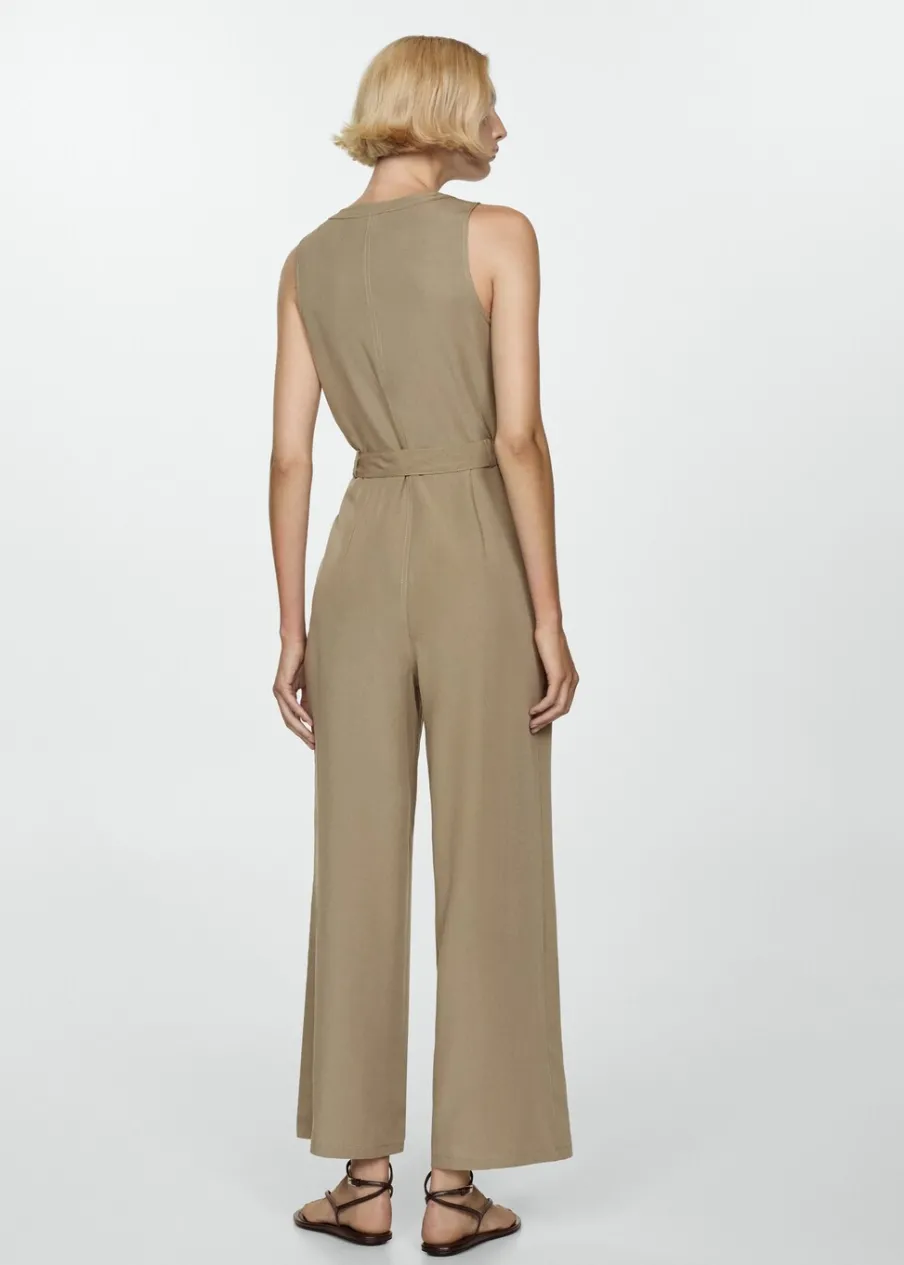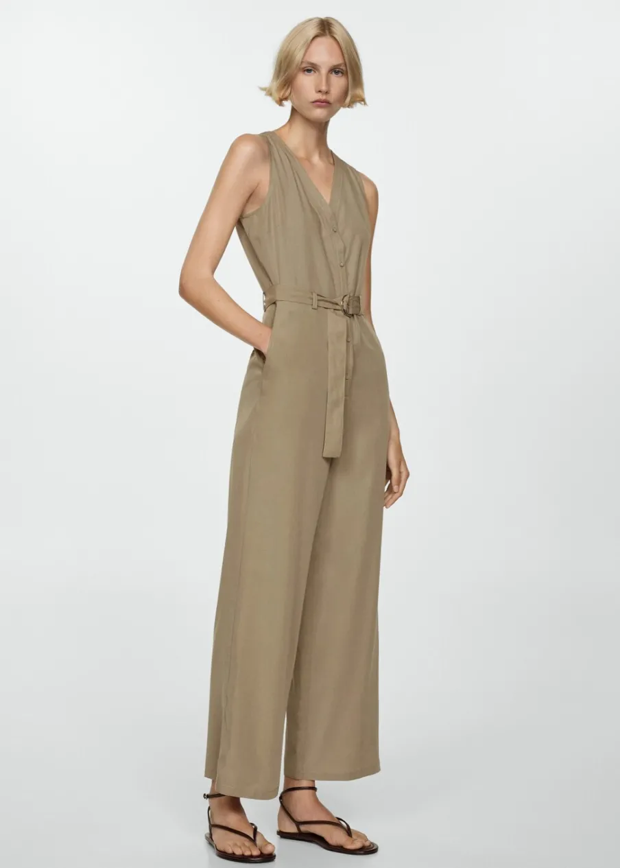 Tkanina mieszana z lnu i lyocellu. Model prosty. Model długi. Dekolt V. Bez rękawów. Szerokie ramiączka. Dwie kieszenie boczne. Szlufki. Dekoracyjny pasek. Dostępne w Plus Size. Zapięcie na guziki z przodu.