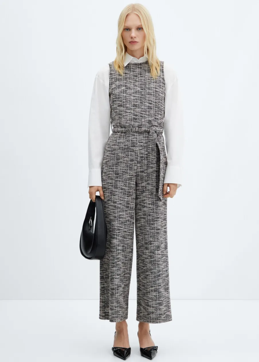 Tkanina mieszanka bawełny. Tkanina tweedowa. Model długi. Fason wideleg. Melanżowy wzór. Okrągły dekolt. Bez rękawów. Szerokie ramiączka. Szlufki. Zapięcie z tyłu na kryty suwak. Wstążka w pasie wiązana na kokardę. Kolekcja wizytowa.