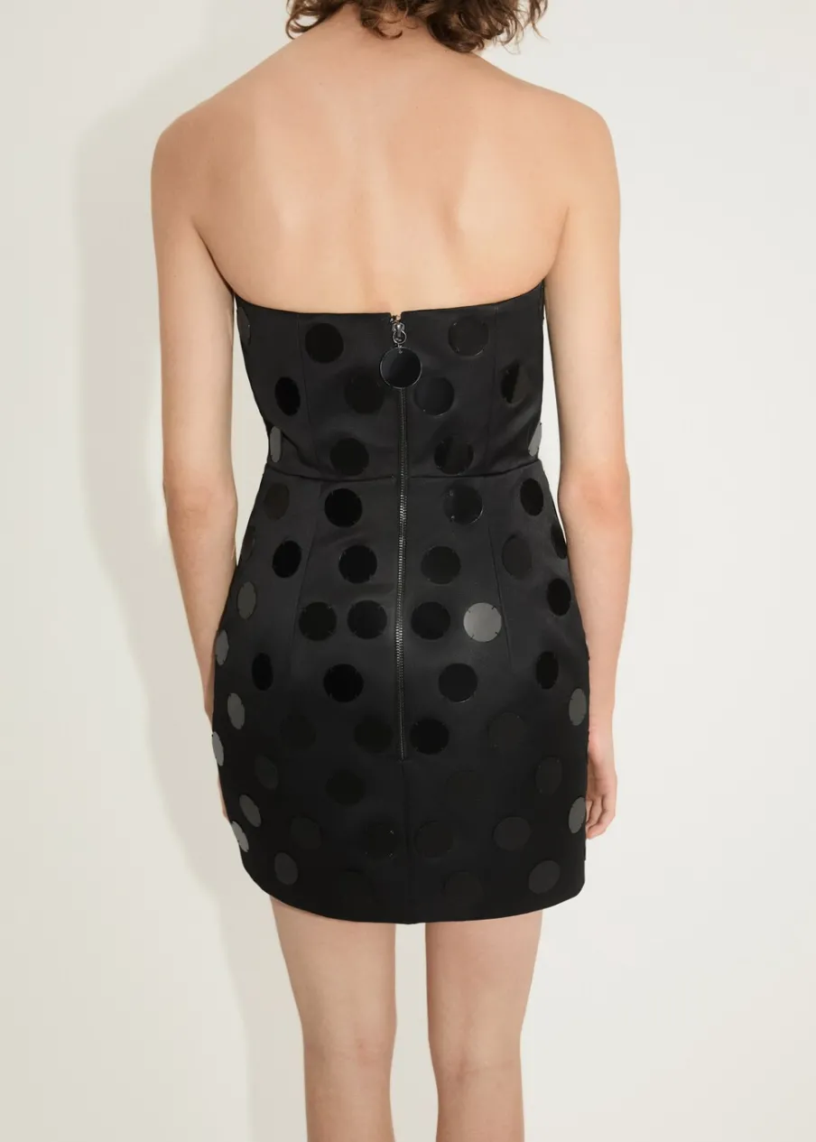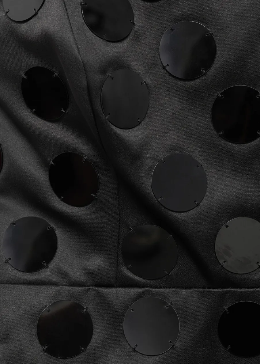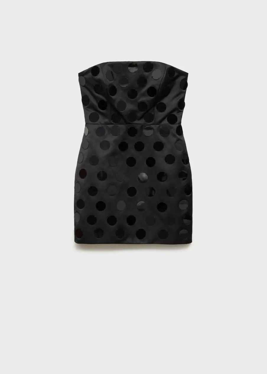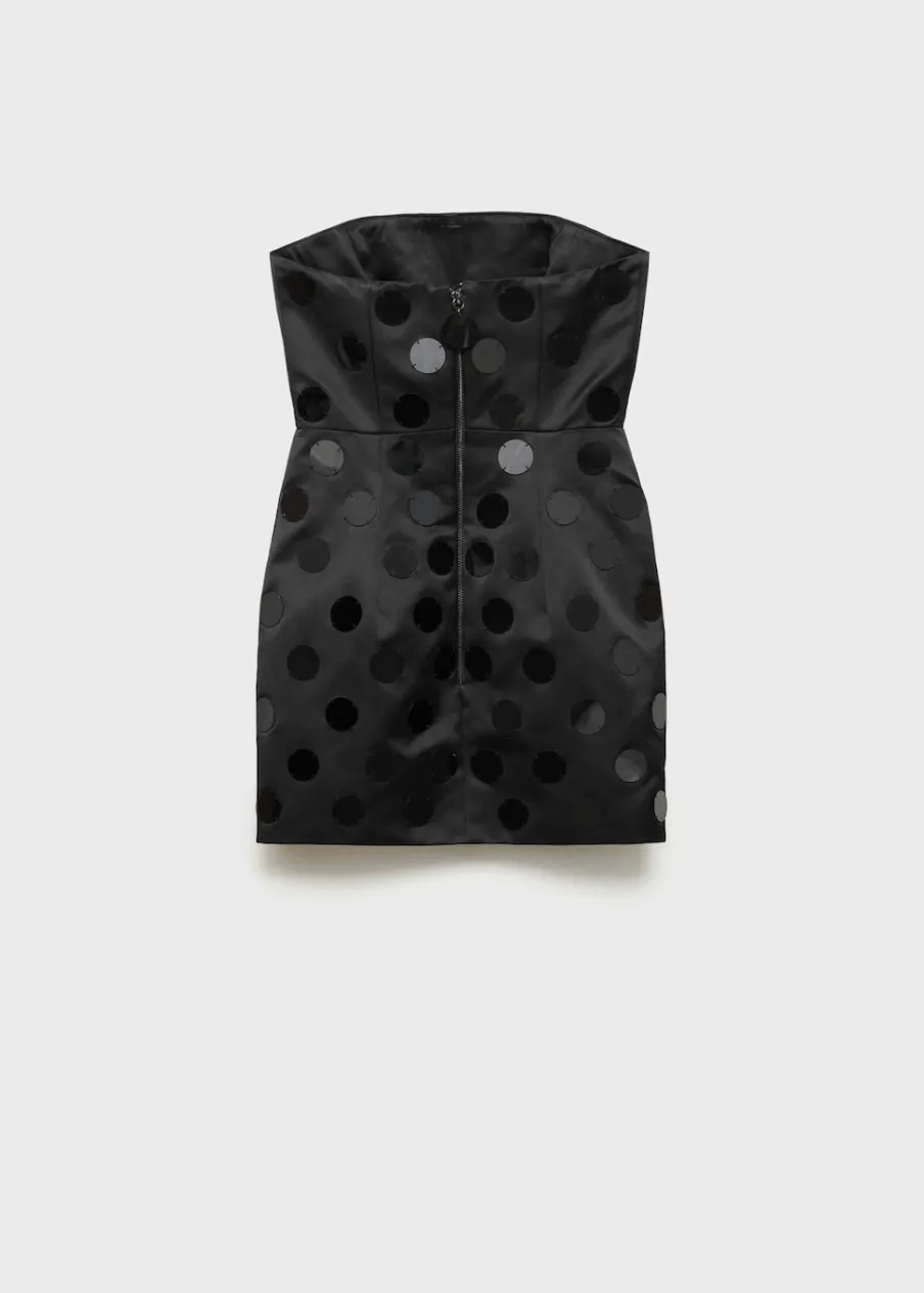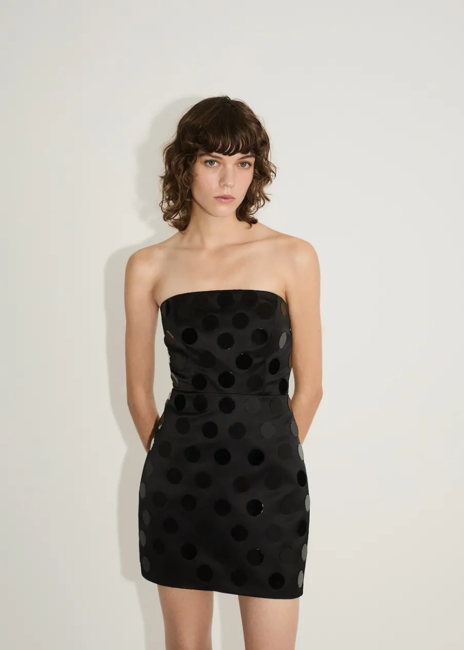 Ta sukienka została stworzona, by przemienić Cię w duszę imprezy. Jej fason z dekoltem bez ramiączek i lusterkami pod kolor materiału sprawi, że będziesz wyglądać olśniewająco na każdym wydarzeniu. Satynowa tkanina. Włoska tkanina. Aplikacja z metalowych lusterek. Model wcięty. Krótki krój. Dekolt bez ramiączek. Bez rękawów. Zapięcie na zamek z boku. Wewnętrzna podszewka. Kolekcja wizytowa. Artykuły z kolekcji CAPSULE można wymienić lub zwrócić w ciągu 14 dni od daty wysyłki.